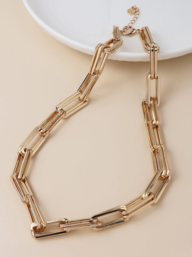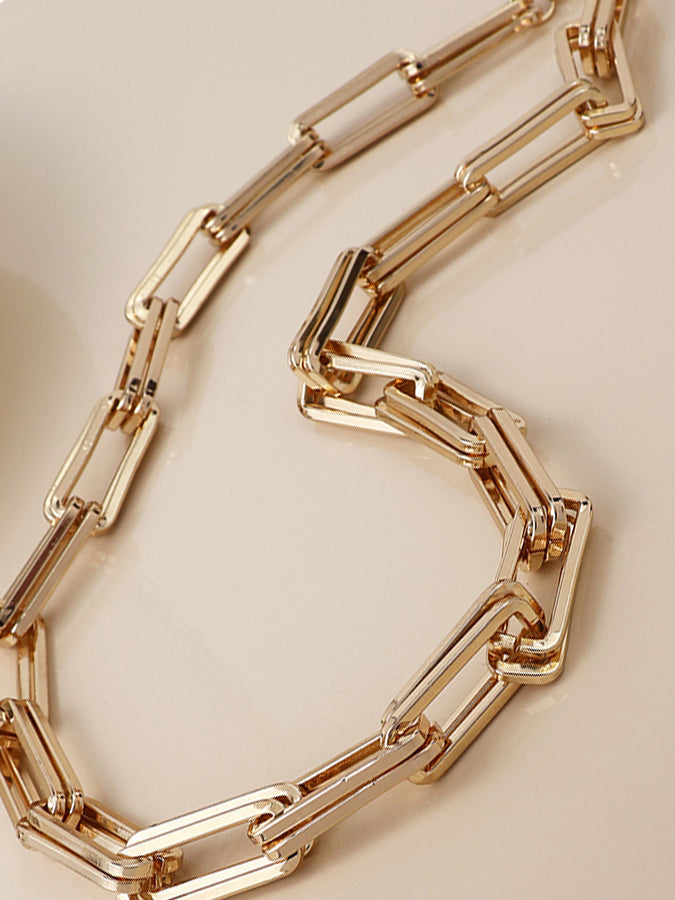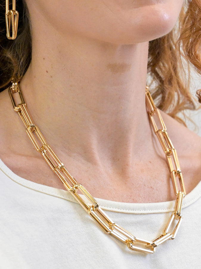 Faux gold plated paperclip chain necklace with double layer links, fastened with a lobster claps and extension chain
