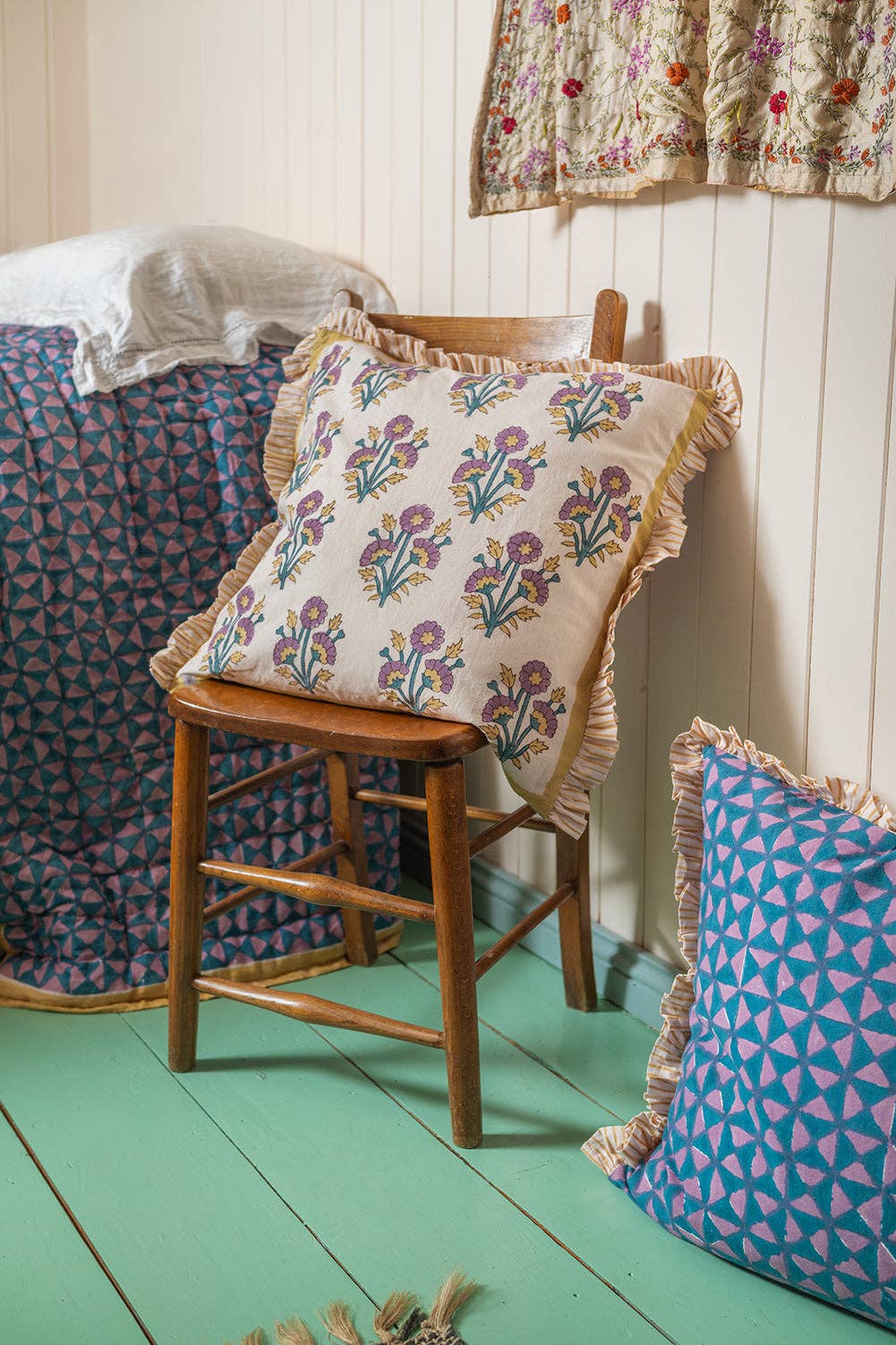 Cornflower & Lilac Block Print Cushion