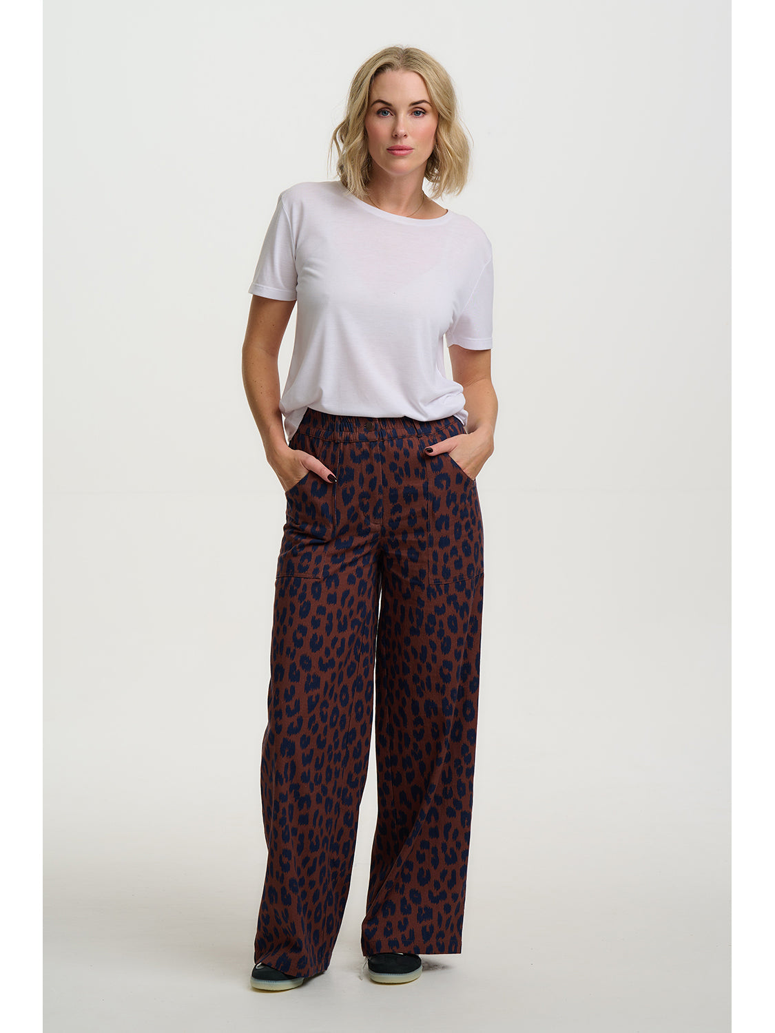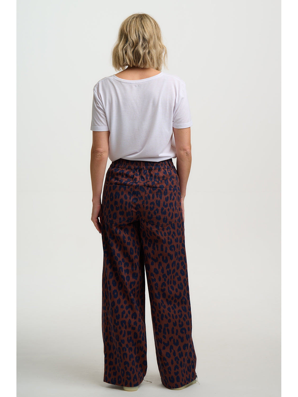 A refined take on our much-loved leopard print, these trousers feature a rich rust and navy colourway. Designed with a elasticated waistband for a comfortable, flattering fit. Finished with two front hip pockets and patch pockets at the back, they offer a relaxed silhouette that’s easy to wear. Style with a simple white T-shirt for an effortlessly elevated look.