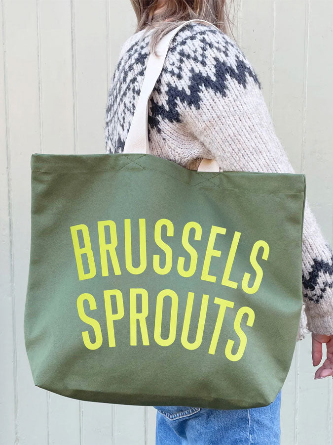 Introducing the Brussels Sprouts - Olive Green Tote Bag by Alphabet Bags. This tote is ideal for anyone who appreciates that these little delicious cabbages aren’t just a Christmas treat! Whether for holiday errands or everyday use, this spacious canvas bag is perfect for carrying your essentials, festive goodies, and whatever else you need.