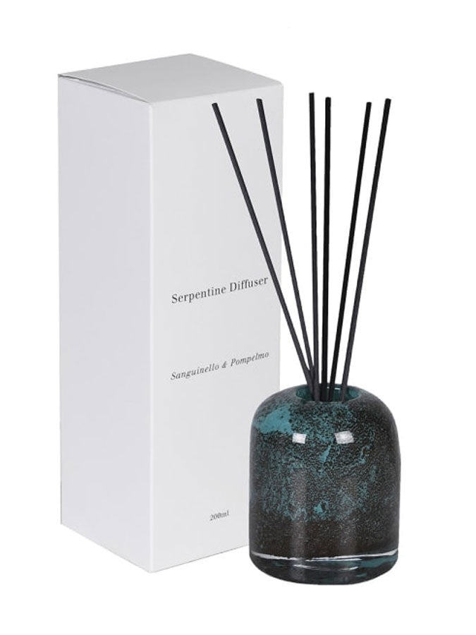 Introducing the Hand Blown Glass Diffuser by Coach House. This diffuser features a refreshing citrus aroma, combining blood orange and grapefruit notes. With a 200 ml capacity, it gently fills your space with a clean, uplifting fragrance to keep your home feeling inviting.