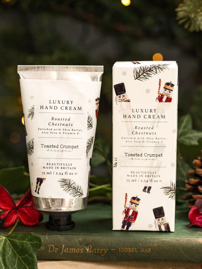 Indulge your hands with our British-made Roasted Chestnut Hand Cream. Packed with Shea Butter, Aloe Vera, and Vitamin E, it delivers luxurious moisture and softness. Comes beautifully presented in a matching hand illustrated gift box.