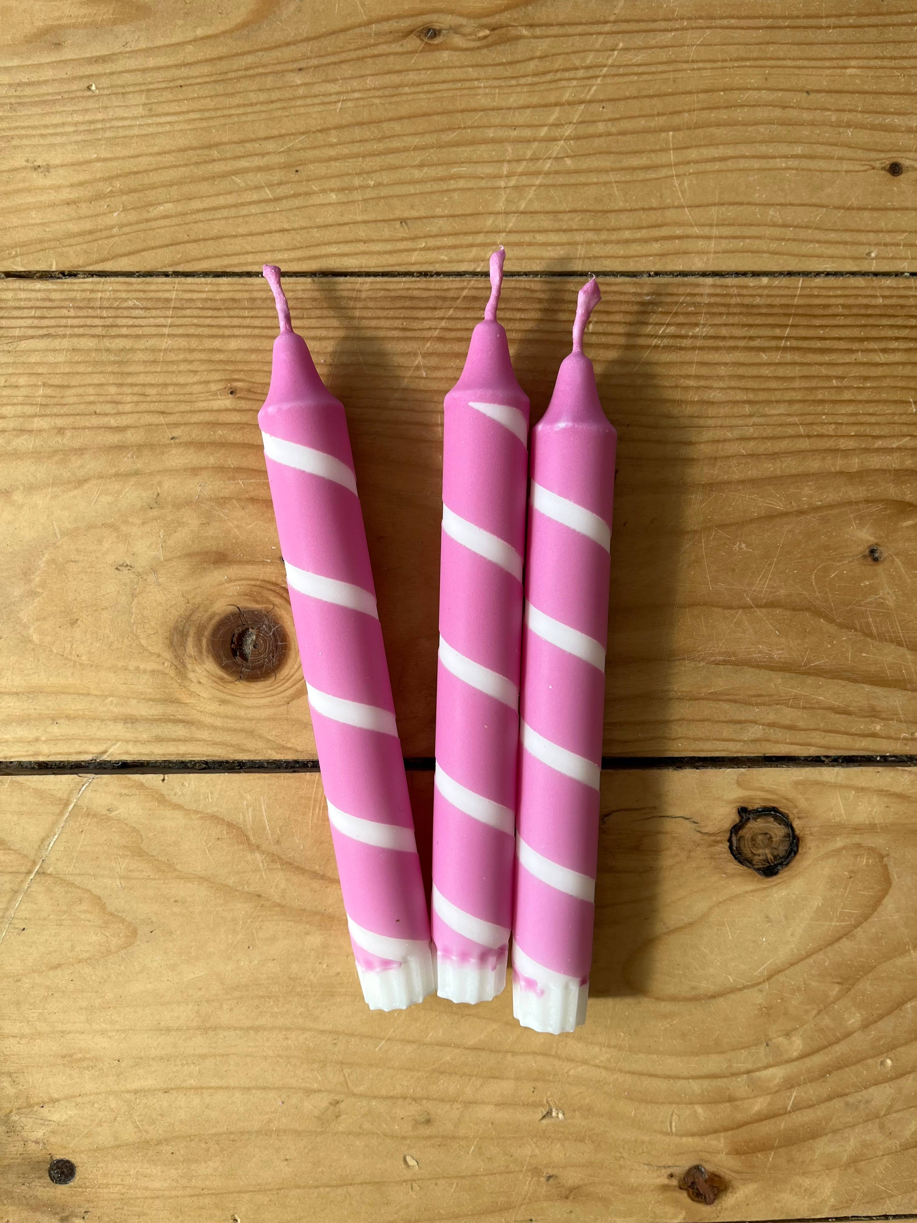 Introducing the Rose & White thin stripe Candle by True North Soapworks - a thinly striped candle featuring a vivid purple with thin white stripes. These quirky candles are hand-crafted in Scotland using 100% Stearin wax, making them longer-lasting and smoke/drip-free. Plus, with a burn time of approximately 6 hours, they're perfect for adding a unique touch to any home.