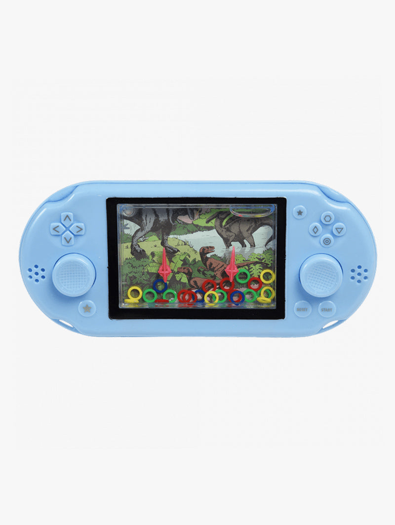 You're looking at the Prehistoric Land Dinosaur Water Game from Rex. Get all nostalgic with this fun and easy handheld game - no batteries required! Simply press the control buttons to try and get as many coloured rings as possible onto the two scoring pegs. Comes in light blue and features dinosaurs on the background of the play area.