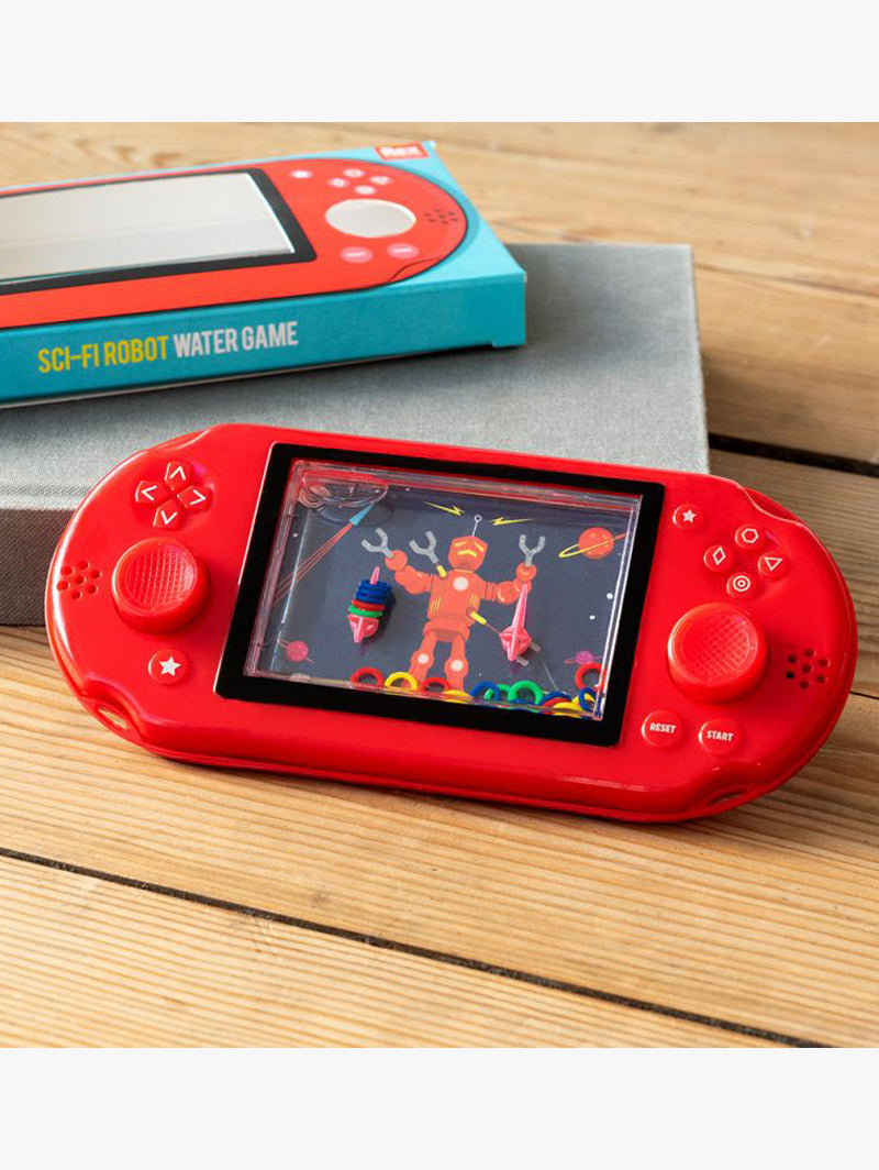 This is the Sci Fi Robot Water Game from Rex. Get all nostalgic with this fun and easy handheld game - no batteries required! Simply press the control buttons to try and get as many coloured rings as possible onto the two scoring pegs. This Sci-fi Robot water game comes in red and features a funky red robot on the background of the play area.