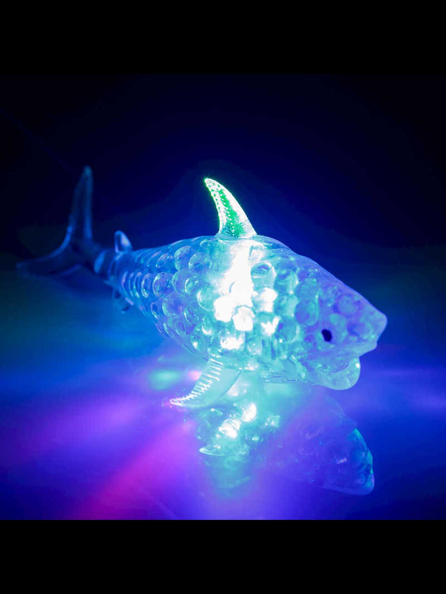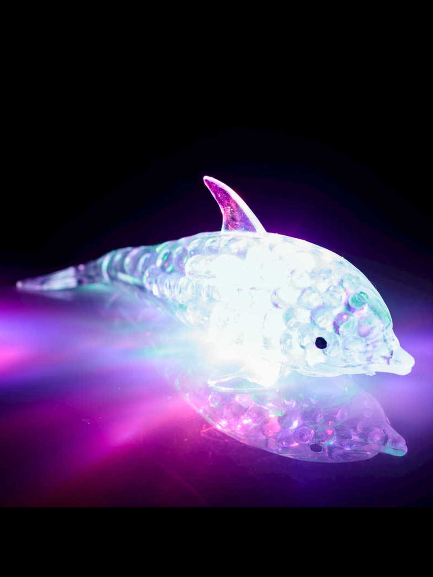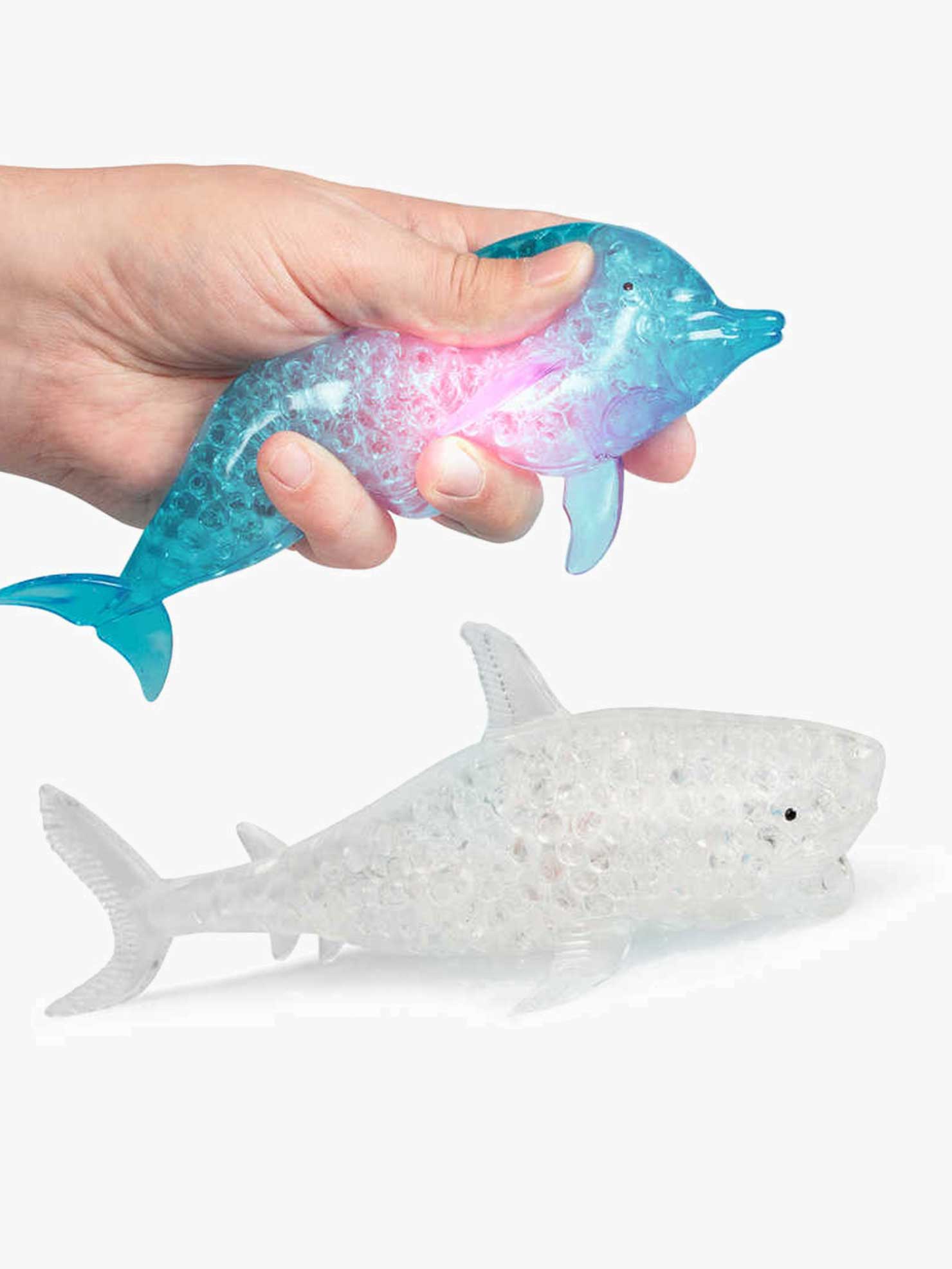 This is the Flashing Ocean Jellyball Ball from Tobar. Sealife creature filled with squishy jelly balls. The unique tactile experience of the jelly ball filling makes this toy incredibly satisfying to squash, stretch and squeeze. What's more, give it a tap and the insides will illuminate thanks to the flashing ball of LEDs inside it. Comes in an assortment of blue dolphin and clear shark designs.