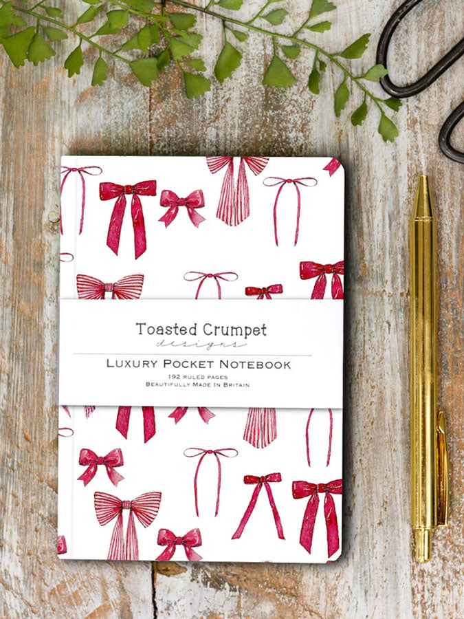 Adorable A6 notebook with a bow design and 192 lined pages for capturing your clever thoughts. Made in Britain with sustainably sourced paper—pocket-sized perfection.