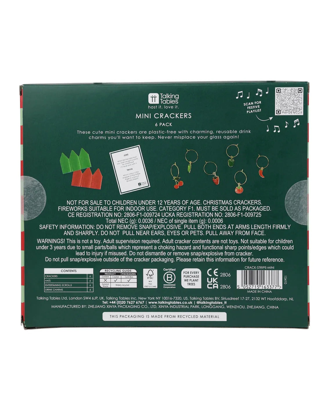 Small in size but big on charm, the Bon Noël Mini Christmas Crackers bring playful festivity to any table. Each cracker includes a hat, joke and a reusable drink charm — ideal for parties, cocktails or thoughtful little gifts. Stylish, plastic-free and beautifully striped for a cheerful Christmas touch.