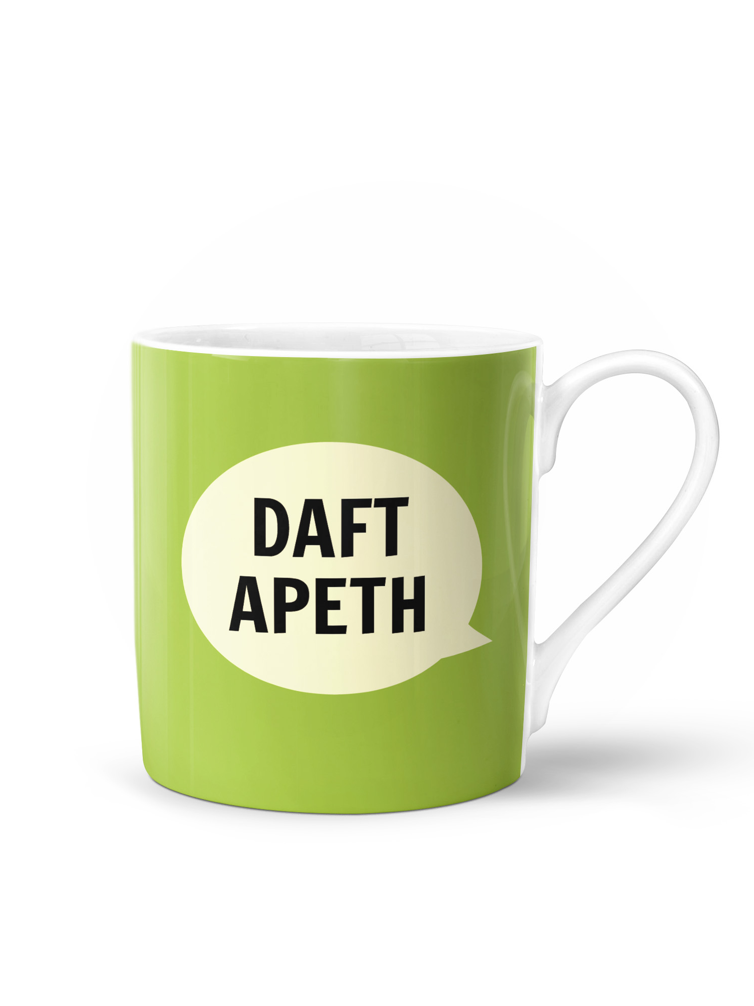 Introducing the Daft Apeth Mug, a perfect gift for the special goofball in your life. Crafted with high quality bone china, this mug fits comfortably in your hand & boasts a 375ml capacity for a good cuppa. Its decorative design is hand-decorated & fired in the UK & it comes with a kraft gift box. You can even put it in the dishwasher for a hassle-free clean.