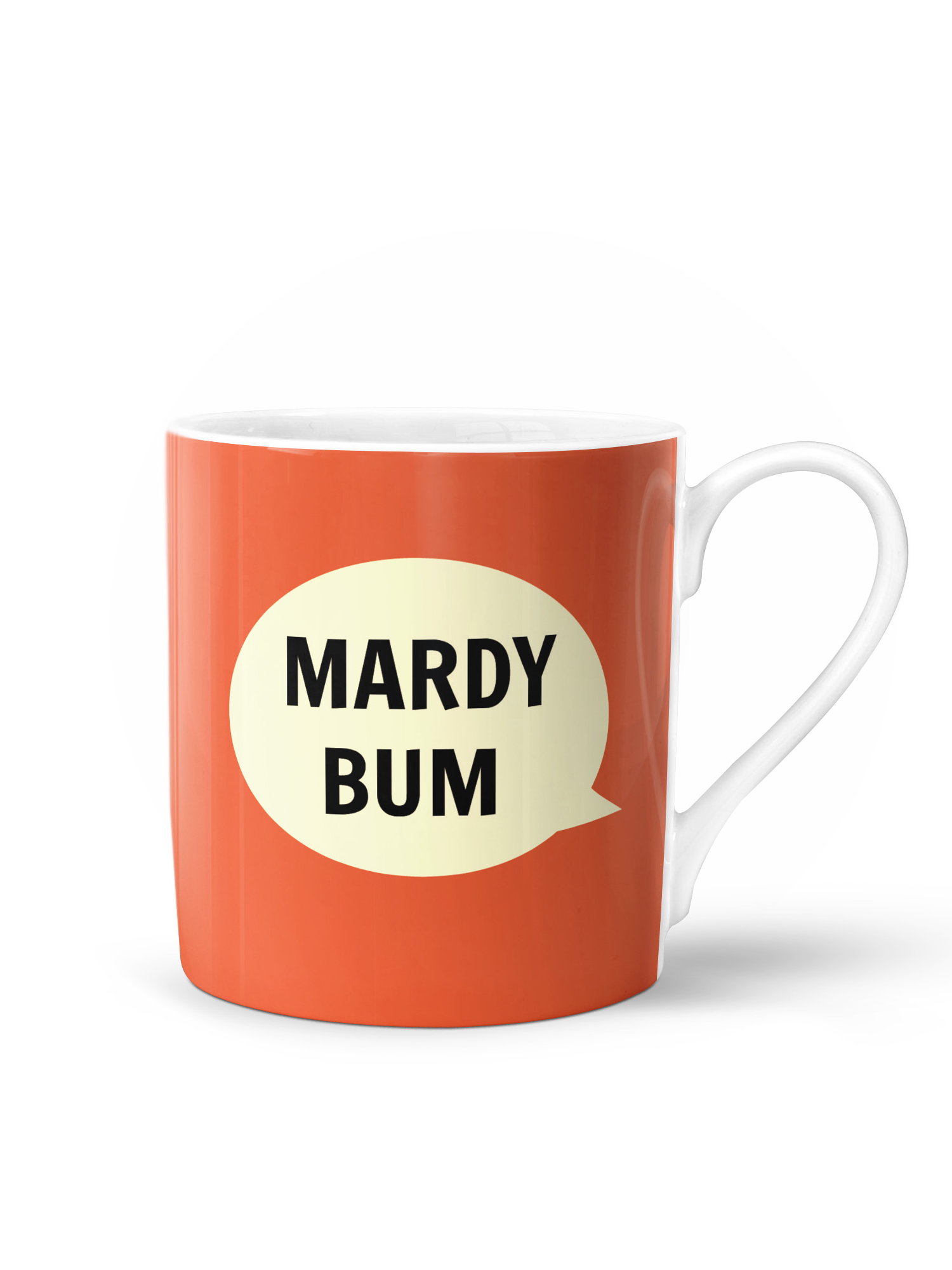 The Mardy Bum Mug from Dialectable is the perfect addition to any kitchen. It features a glossy cantaloupe red design and a large handle to easily grip while drinking. This high quality bone china mug has a capacity of 375ml and is dishwasher safe for added convenience. Plus, its hand decorated and fired in the UK and comes in a quality kraft gift box.