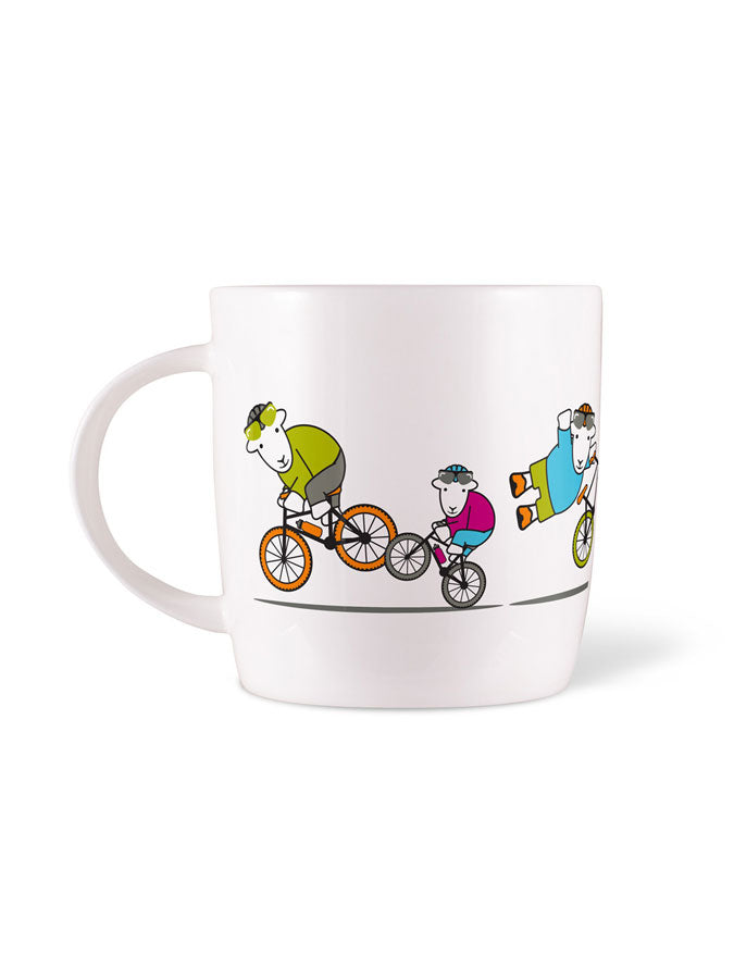 Introducing the Herdy Tour De Fleece Mug from Herdy - a charming cup featuring herdy cycling. Crafted from delicate bone china with a 360 ml capacity, it's the perfect choice for sipping on your favourite hot beverage.