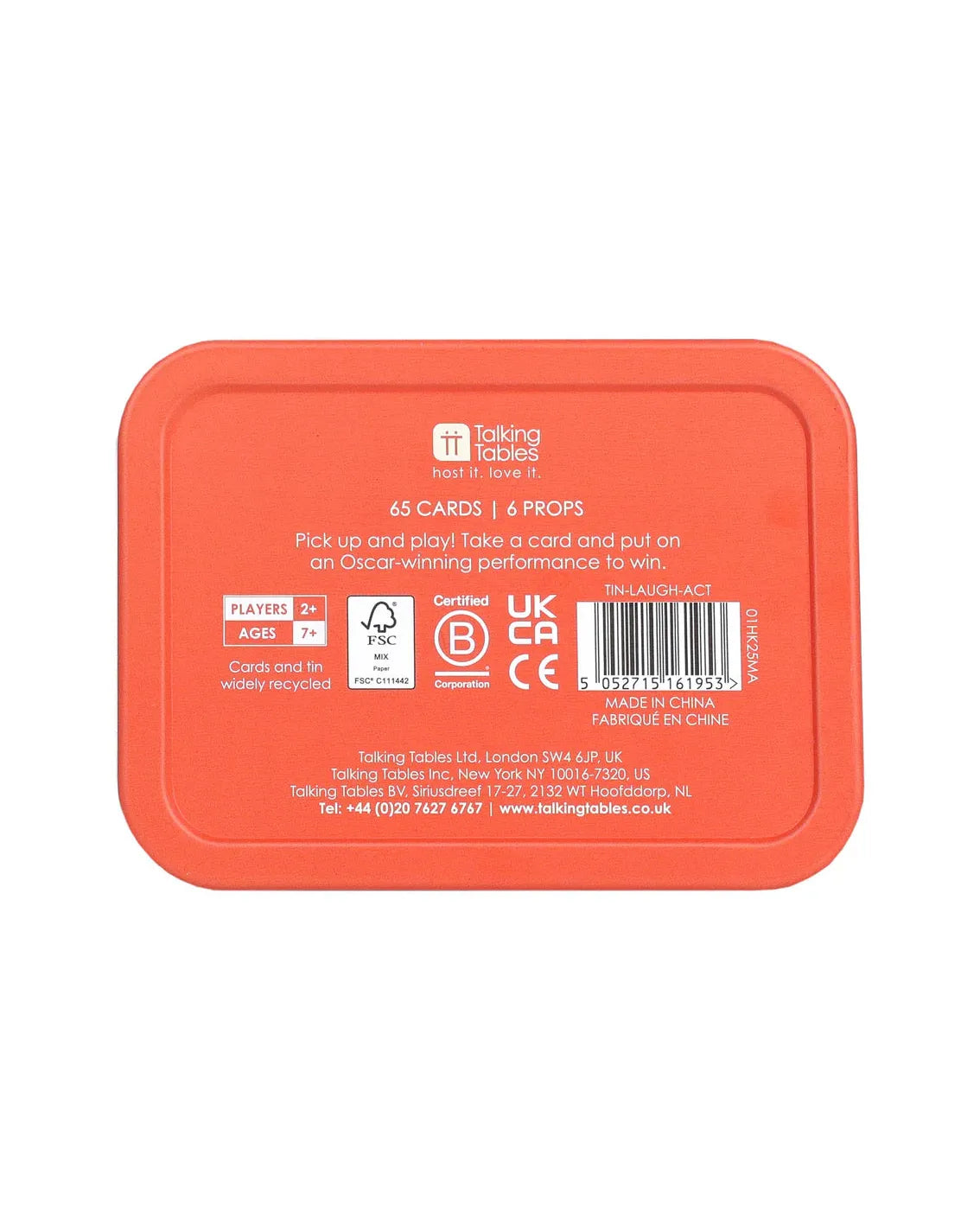 Step into the spotlight with Laugh In A Tin – Act It, the pocket-sized game that brings big laughs to any gathering. With famous titles, silly props and plenty of acting fun, it’s your ticket to instant entertainment. Ready, set, perform — and let the giggles begin!