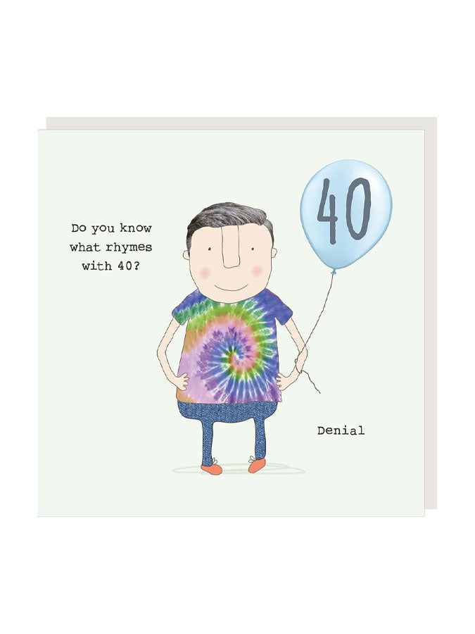 Introducing the Boy 40 Denial Card from Rosie Made a Thing. This amusing card is guaranteed to bring a smile to the recipient's face. Inside is left blank for you to add your own personal touch.