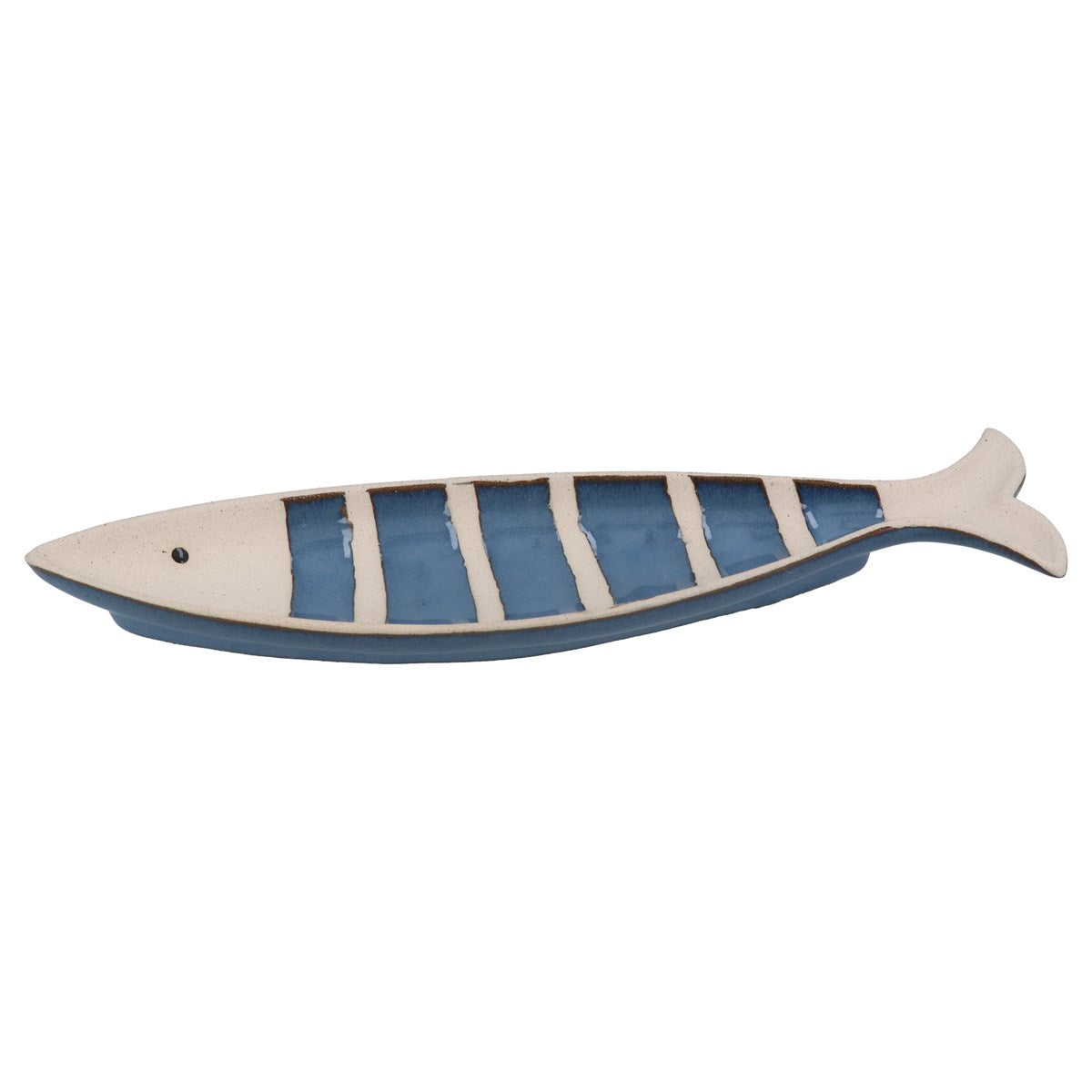 - Blue Stripe Stoneware Sardine Trinket Dish - Large