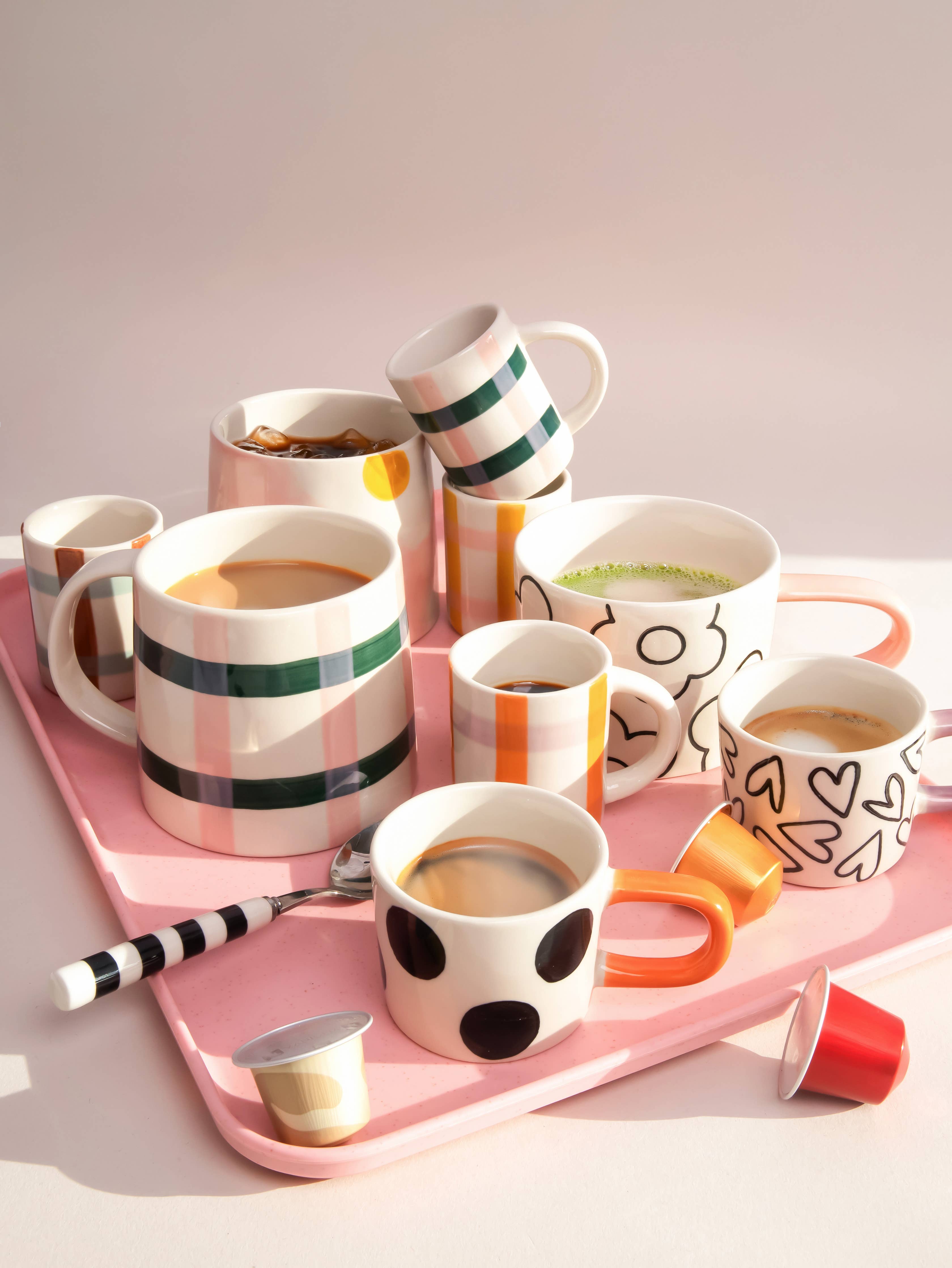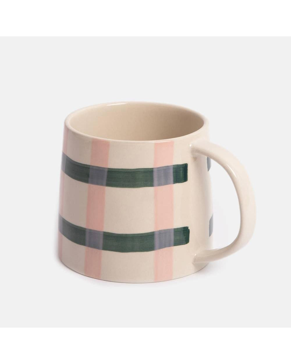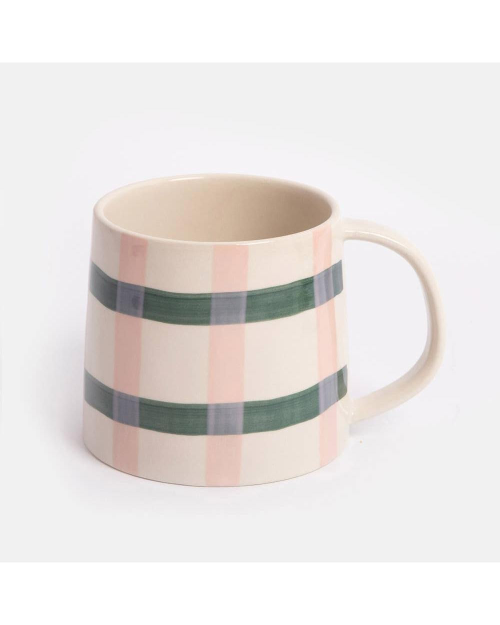 Add a touch of personality and fun to your kitchen with our big stripe mug. This hand-painted glazed stoneware mug features a bold print and a contrasting elongated handle This mug is crafted from durable, heat-resistant glazed stoneware. It is microwave and dishwasher safe. Please note these items are hand painted, hand finished and each will display unique characteristics. Slogans are unglazed to stand out as a design feature. Dimensions - H7cm, W14.5cm Dia 9.5cm