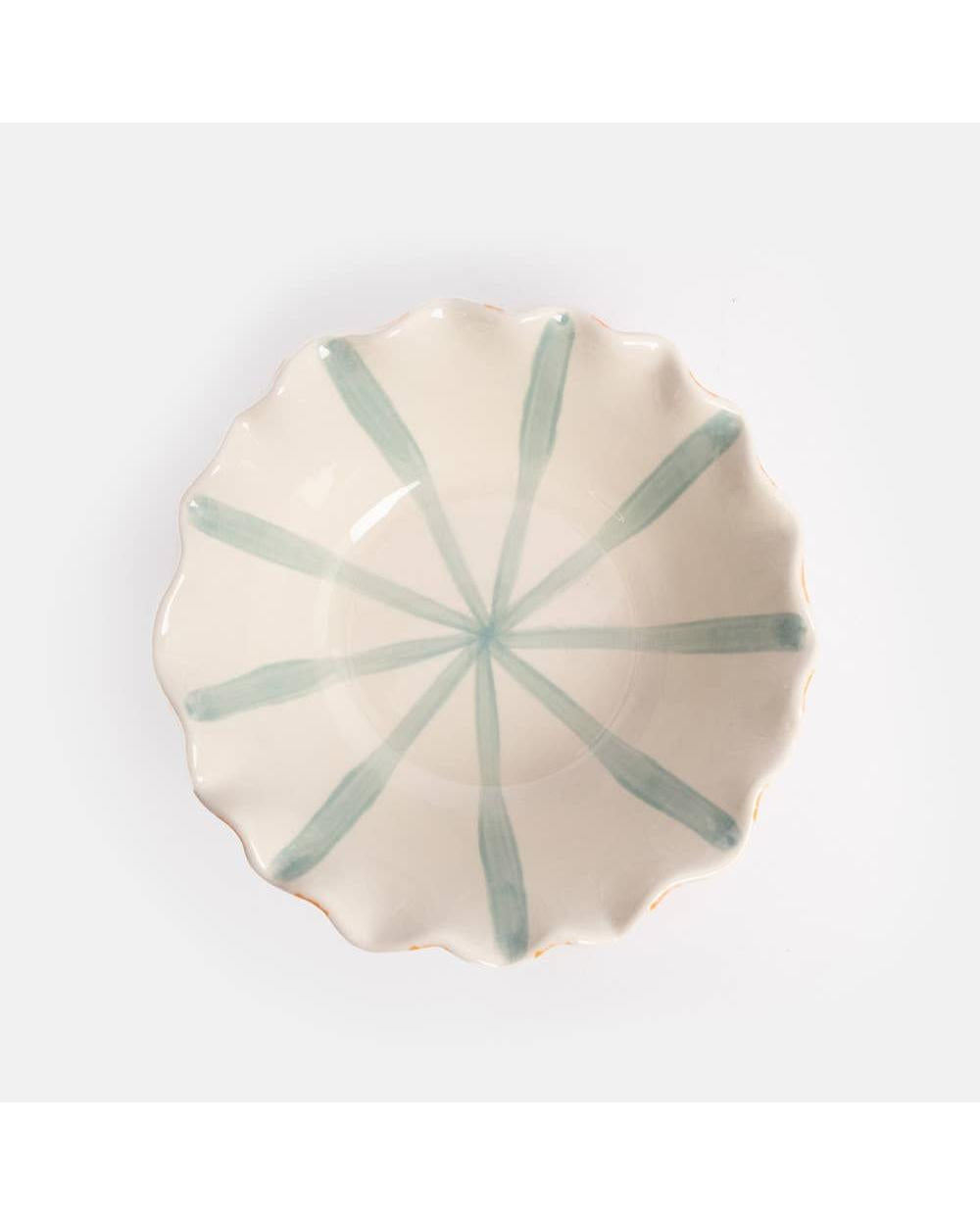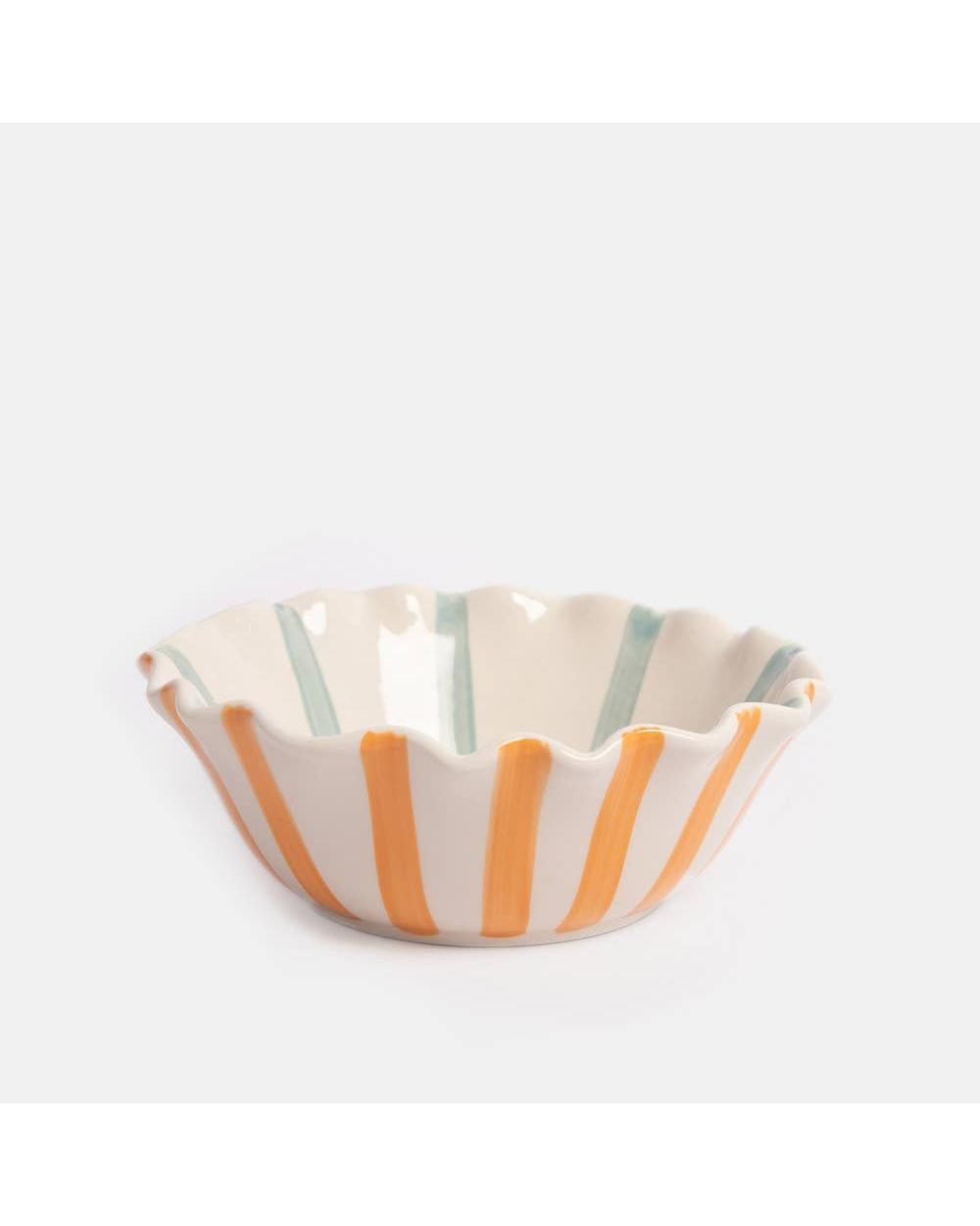 Orange/Blue Inside & Outside Stripe Frilly Bowl