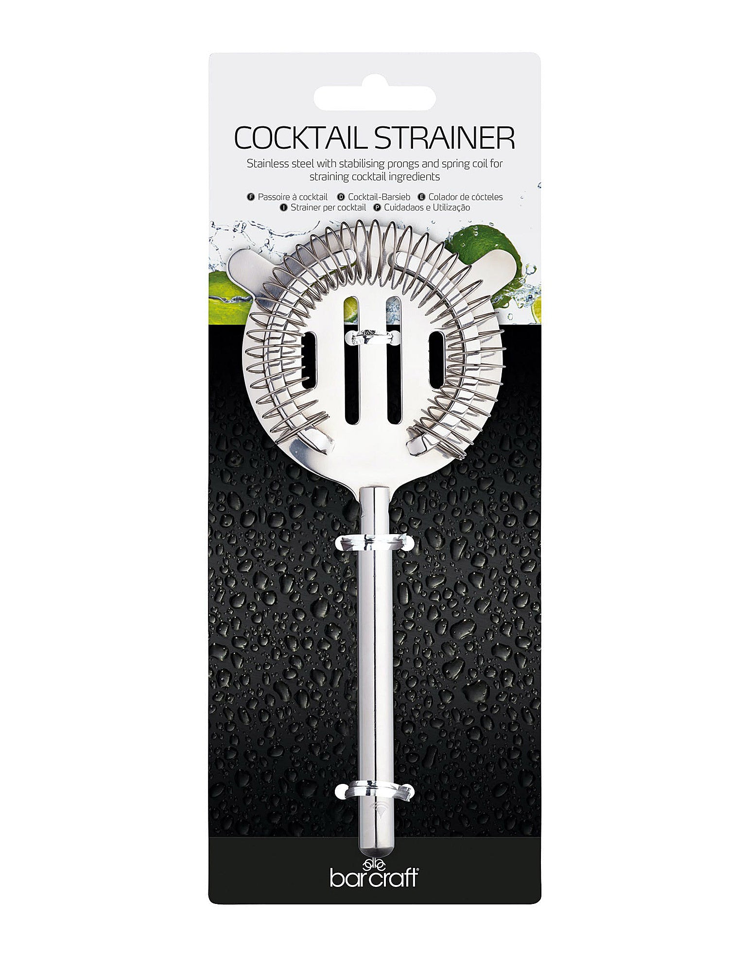 Here is the BarCraft Cocktail Strainer from Kitchen Craft. An essential tool to make a cocktail, this stainless steel cocktail strainer is perfect for removing ice and other cocktail ingredients as they are being poured into the serving glass. Featuring stabilising prongs to rest securely on the rim of the glass, it is an ideal tool for making a delicious drink.