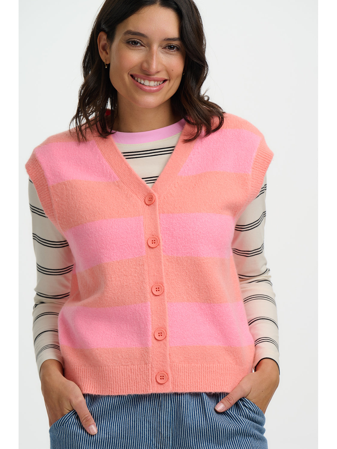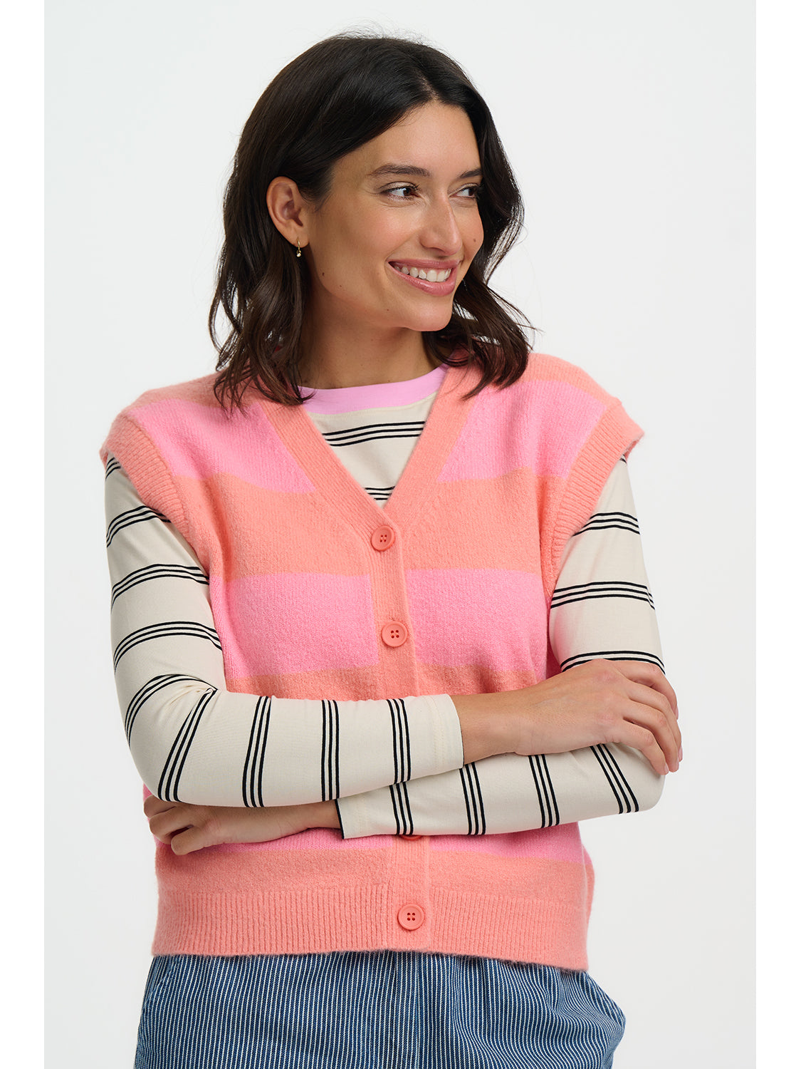 Amber Knit Vest - Peach/Pink Pastel Stripe