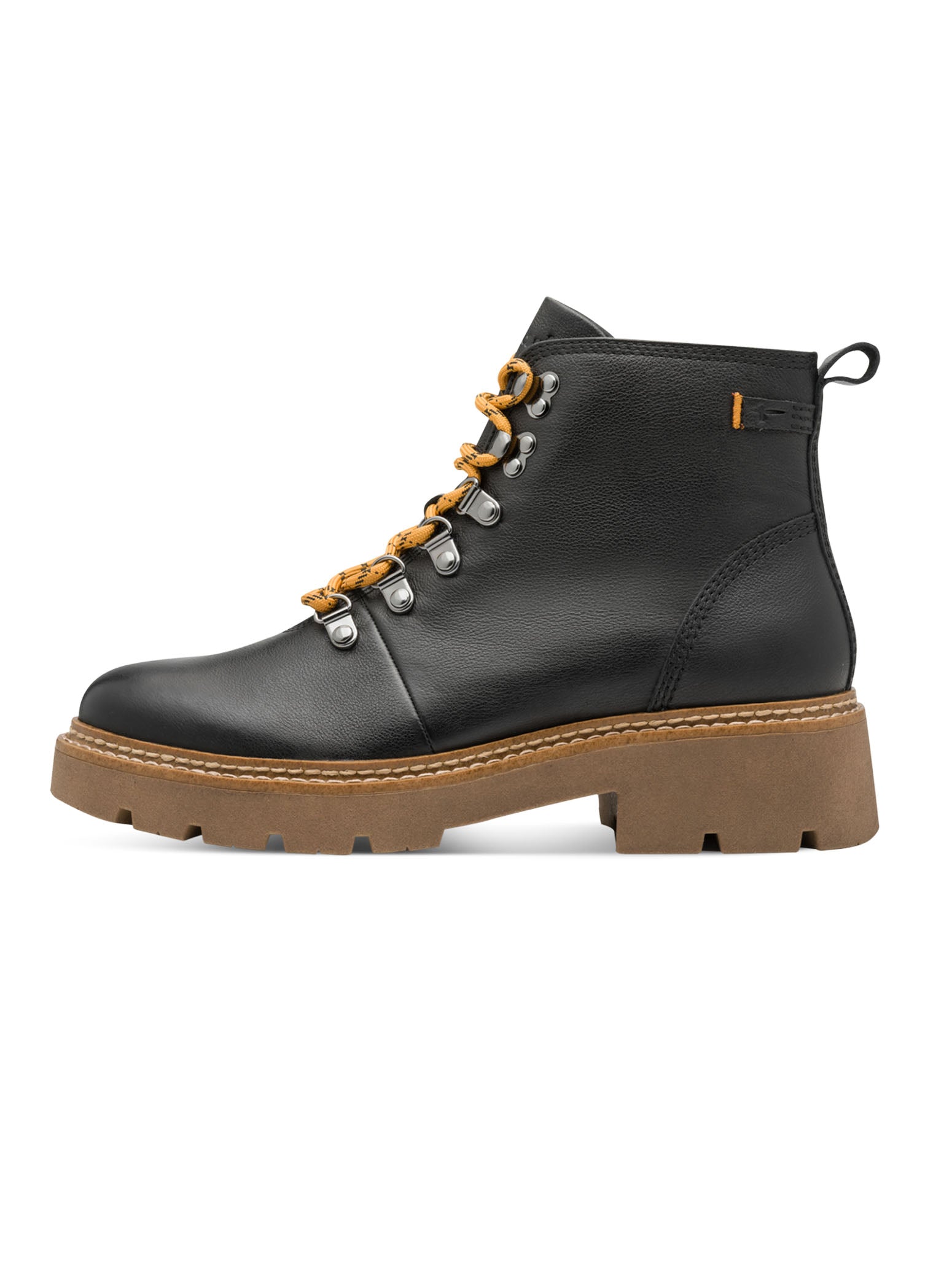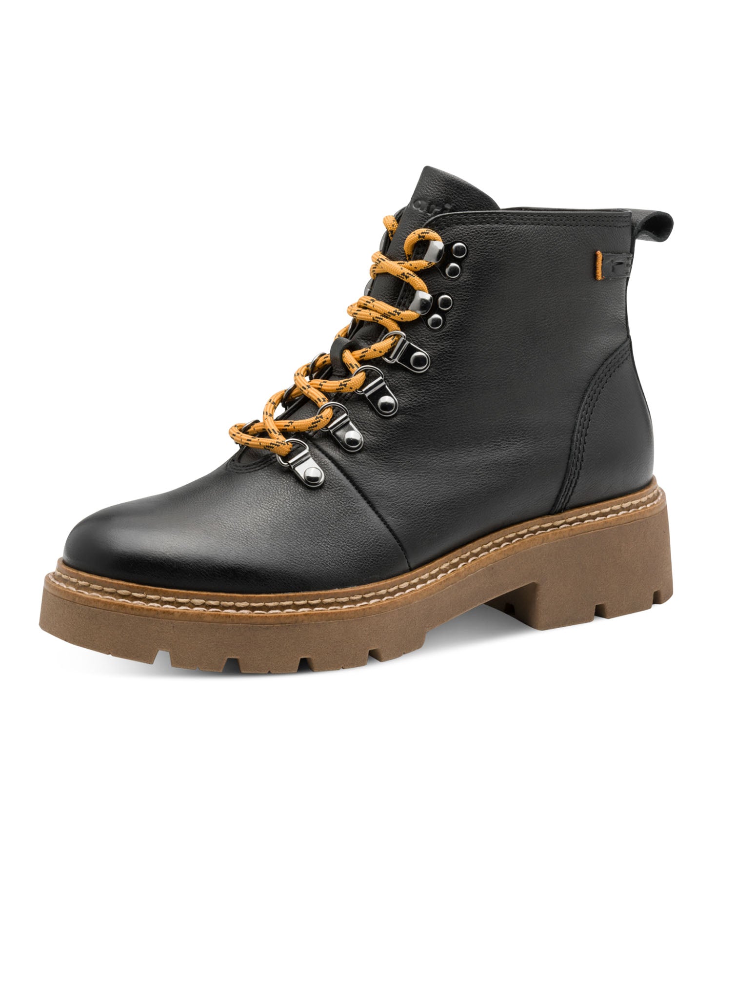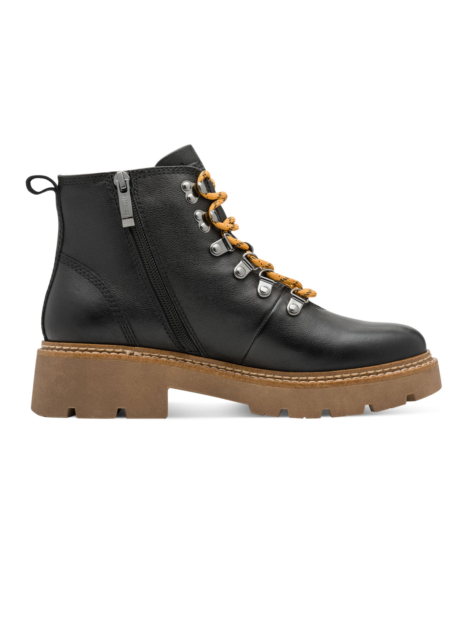 Built for busy days and crisp autumn walks, these black Tamaris boots blend comfort and effortless style. The soft memory foam footbed keeps every step cushioned, while the lace-up front and handy side zip make them easy to pull on and go. Finished with a bold, structured sole and a sleek double-edged shaft, they bring a cool, confident edge to any outfit. Perfect for everyday wear — from city errands to weekend exploring.