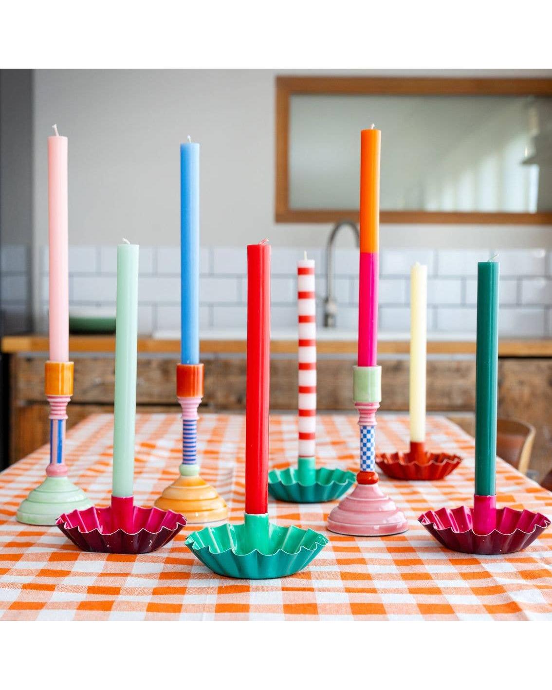 Here we have the Blue Straight Dinner Candle from Talking Tables. A bold candle made from paraffin wax. Each candle lasts approximately 9 hours when burnt.