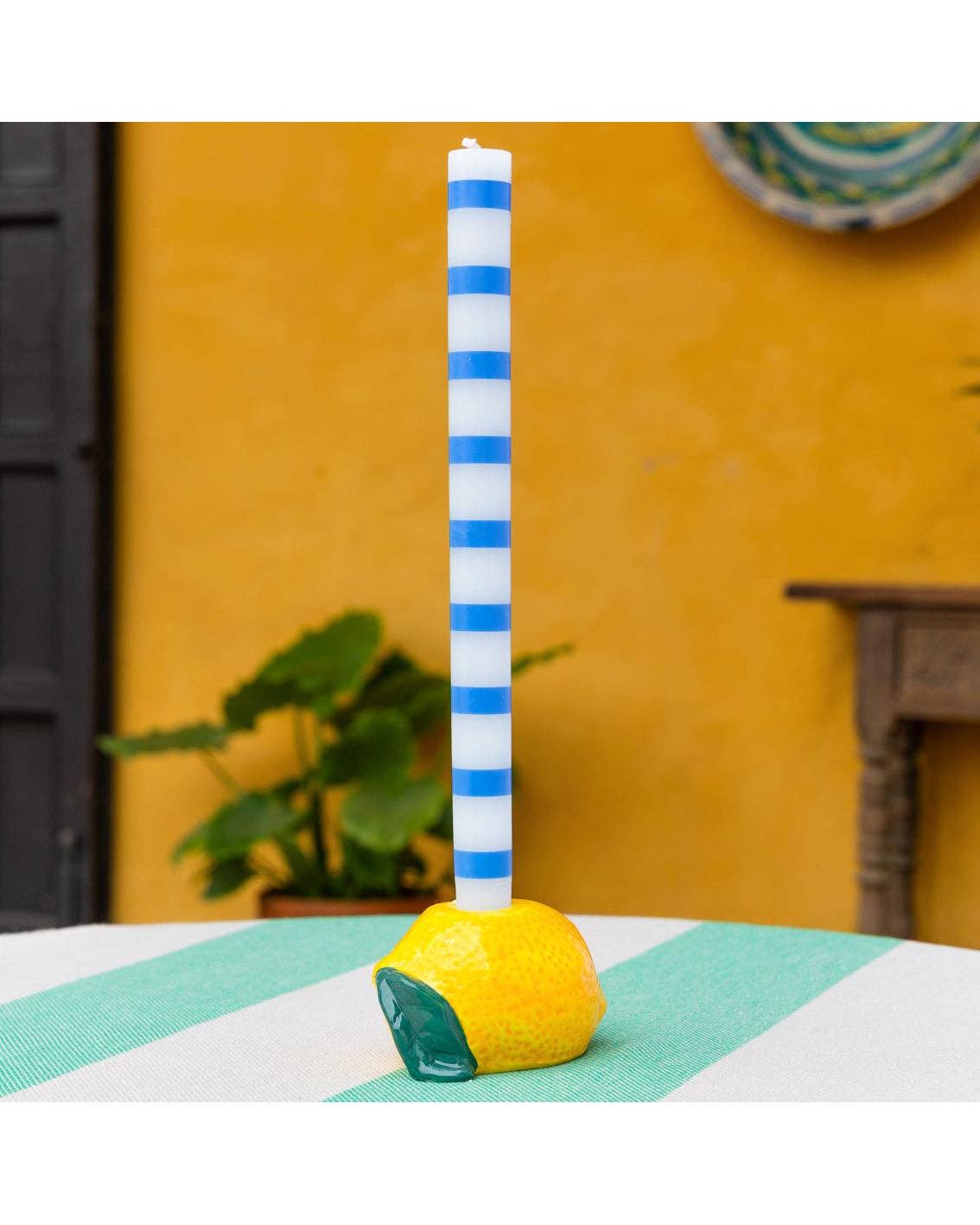 - Blue & White Stripe Dinner Candles