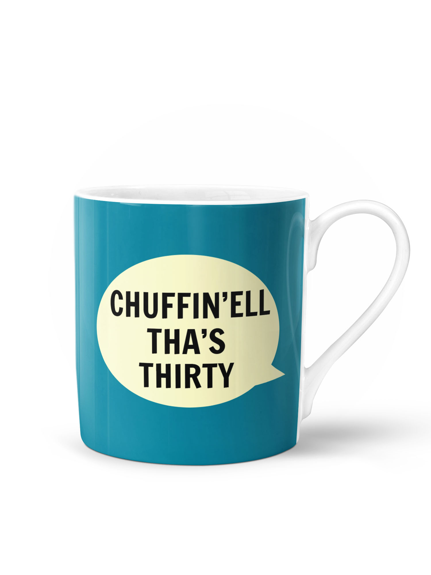 Celebrate the big 3-0 in true Yorkshire fashion with this charming Chuffin'Ell Tha's Thirty mug from Dialectable. Combining the practicality of bone china with a glossy teal glaze, this mug makes the perfect gift to mark the milestone event. Give a unique present that your special someone will love!