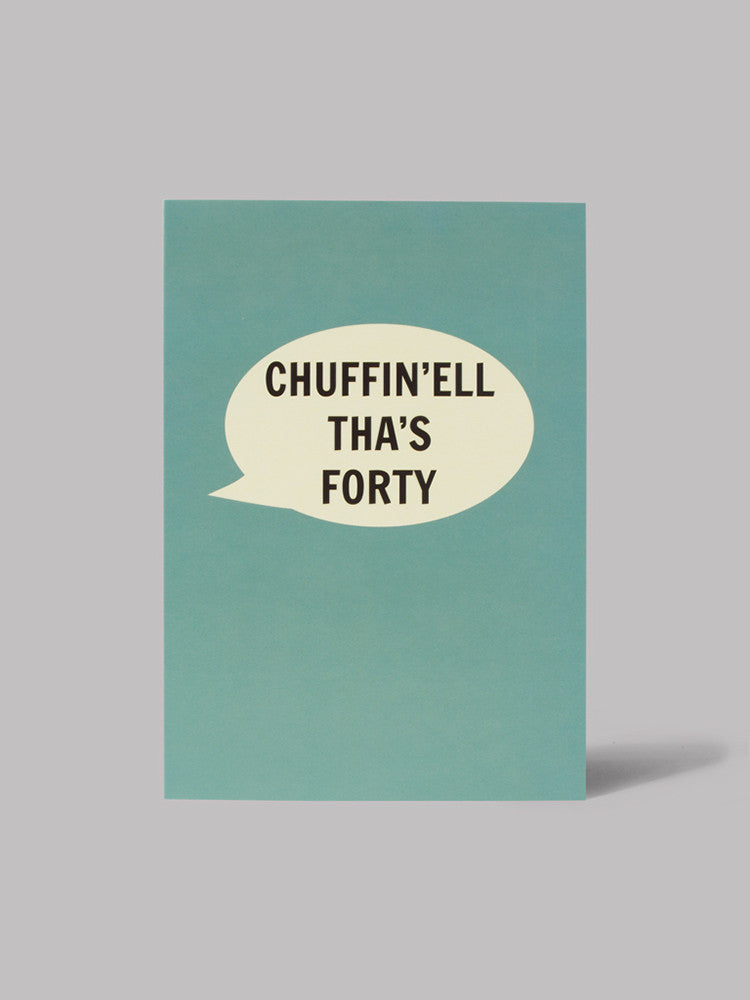 Dialectable cards are the bee's knees, great for any occasion; colourful, bold and always right. Just like us Yorkshire folk then 'ey! This card here says 'Chuffin'ell Tha's Forty' Perfect for a Yorkshire lad's or lass's fortieth birthday.