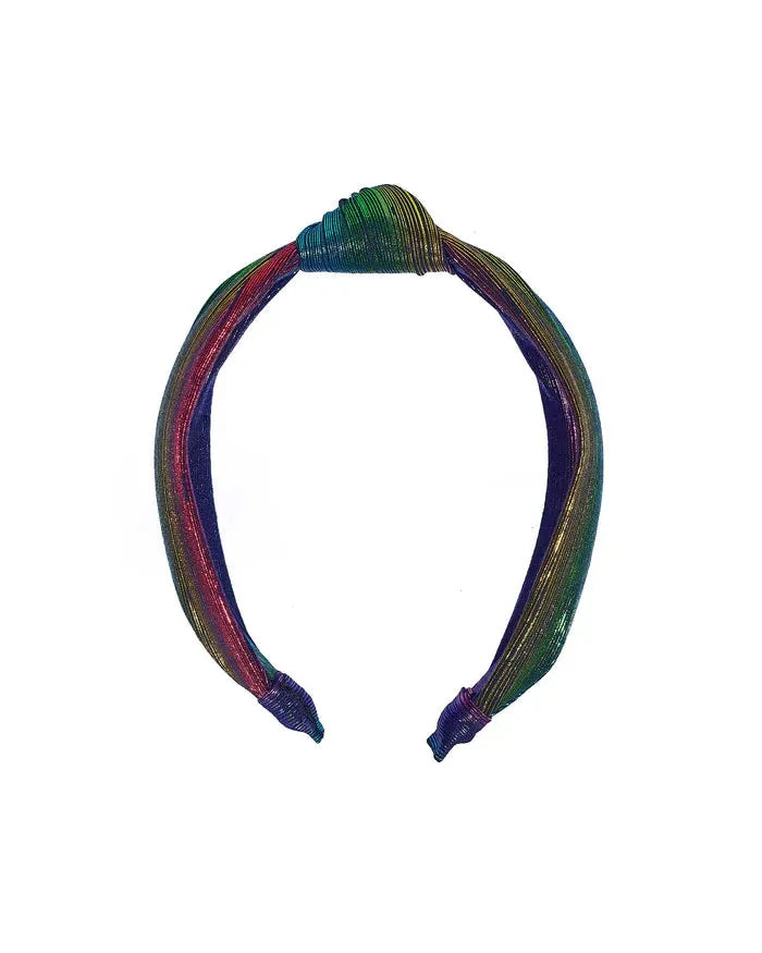 Get your groove on with the Disco Fever Knotted Headband! Soft rainbow foil fabric and a stylish twisted knot add instant sparkle. Perfect for little dancers ready to shine on and off the dancefloor.