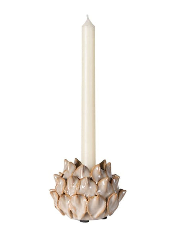 The Fawn Lotus Candle Holder by Coach House features a soft fawn shade and a lotus flower design. Crafted from durable ceramic, this candle holder works beautifully on its own or when paired with a candle, adding a gentle touch to any space.