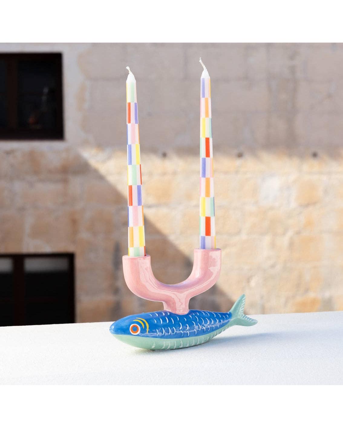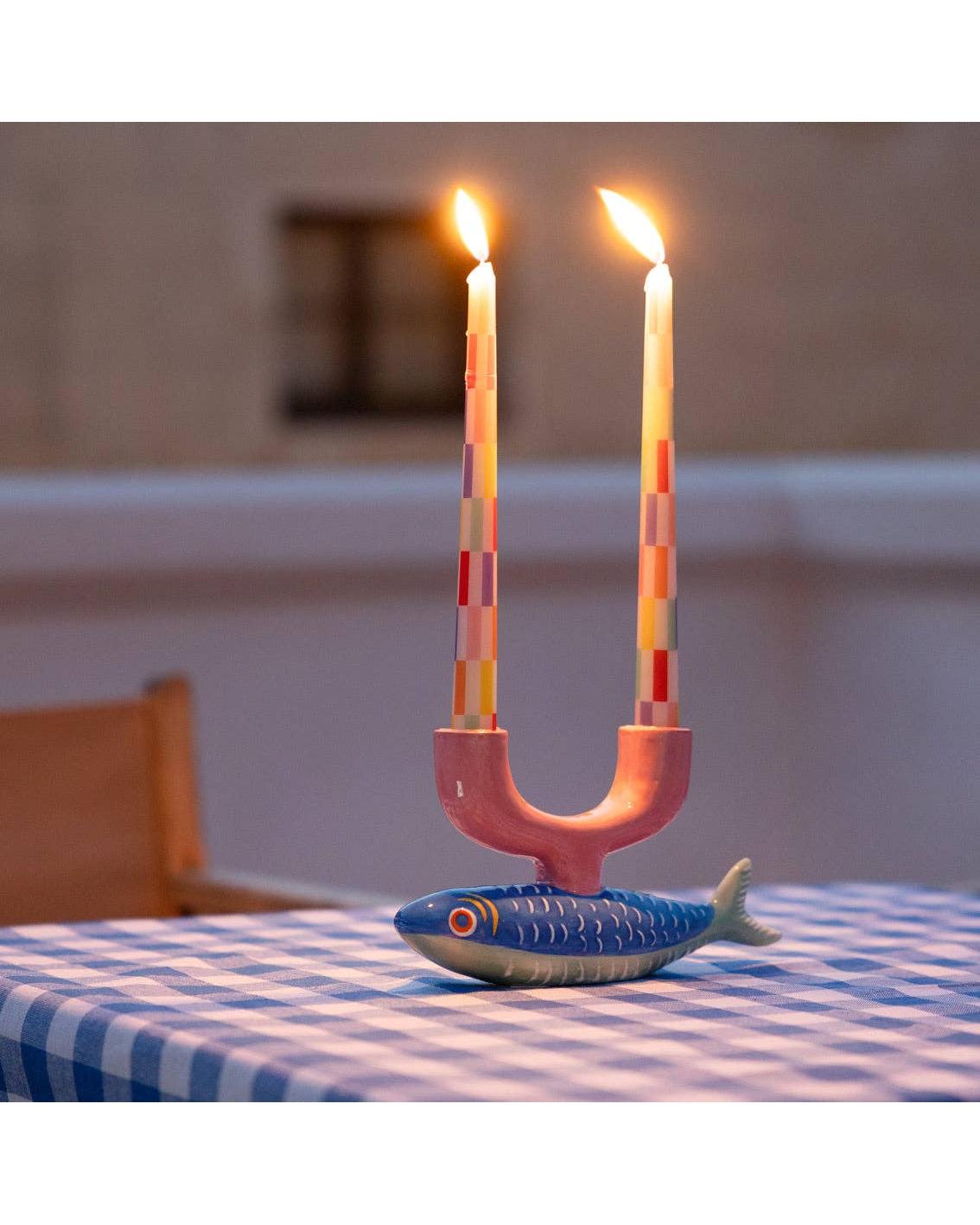 Introducing the Hand-Painted Fish Ceramic Candle Holder from Talking Tables. Beautifully crafted and individually hand-painted, this charming ceramic piece holds two standard tapered candles. With its coastal-inspired design, it’s the perfect way to bring a touch of seaside character to any room.