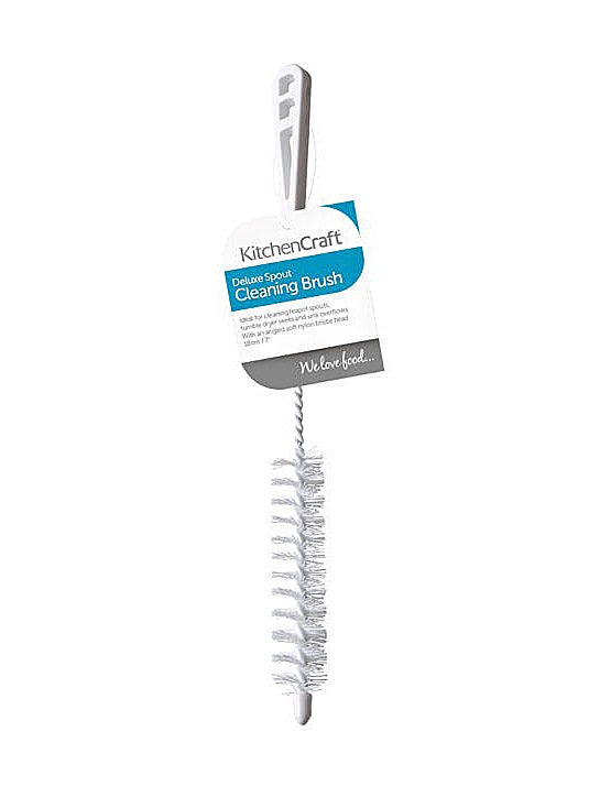 This is a 26cm Deluxe Spout Cleaning Brush from Kitchen Craft. A traditional style spout cleaning brush with a durable angled bristle head and plastic handle with integral hanging loop.