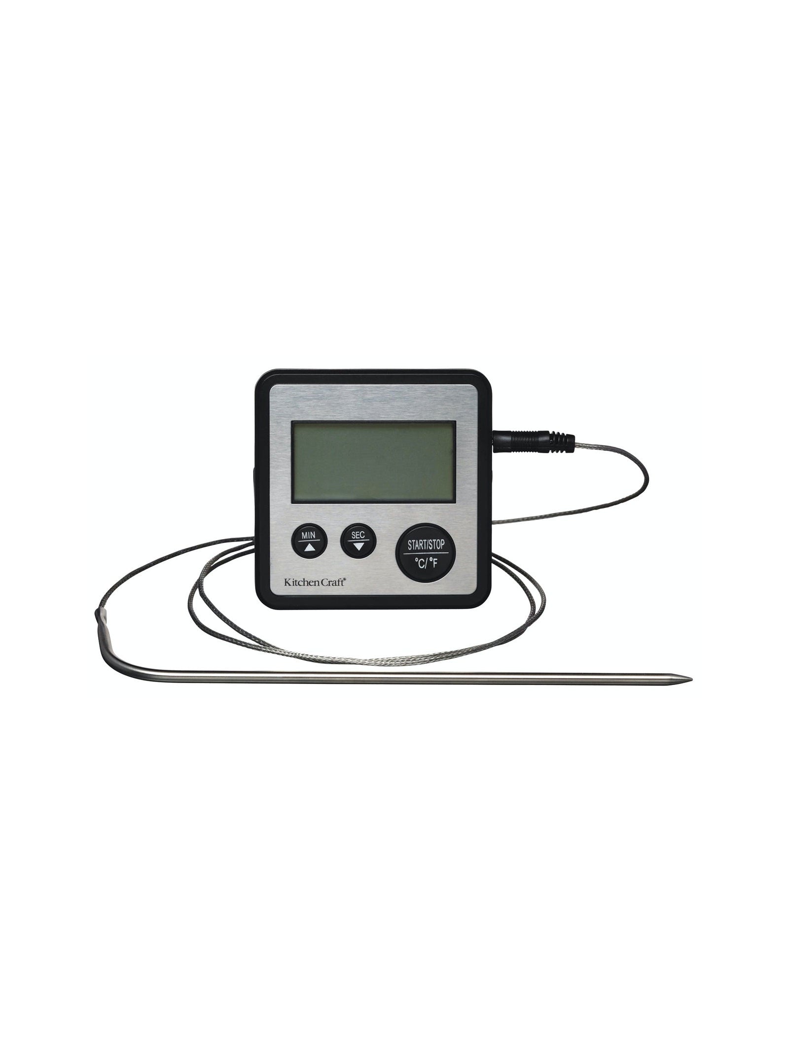 You’re looking here at the Digital Cooking Thermometer and Timer from Kitchen Craft. Leave nothing to chance and remove any doubt about whether meat is cooked thoroughly with this thermometer and timer combination. Simply set the required cooking time on the timer and check the inner food temperature with the probe. The probe can even stay inside the meat as it cooks, leaving the LCD display on the outside so you can always check what's going on. Ideal for use with all types of meat and poultry and for use in ovens, deep fryers, boilers and barbecue grills. Featuring heat resistant wire and a stainless steel probe. The timer can also be used on it's own.