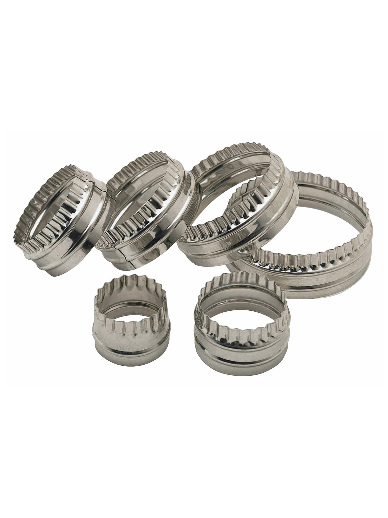 Here we have the Double Edged Pastry Cutters Set/6 from Kitchen Craft. Ideal for making jam tarts, mince pies, pastries, canapés, scones and cookies, this set of six dual fluted and plain edge cutters all fit nicely inside each for easy and convenient storage when not in use.