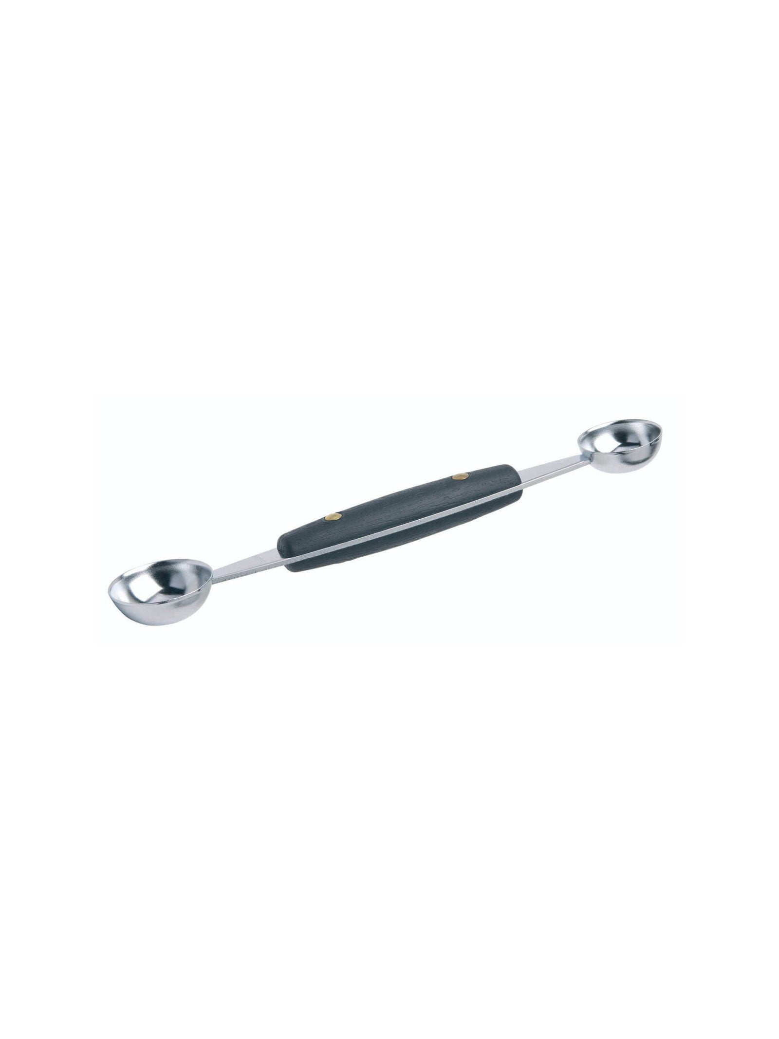 We show here the Double Headed Melon Baller from Kitchen Craft. Ideal for starters and desserts, this twin stainless steel headed melon baller is the perfect choice for making two sizes of balls.