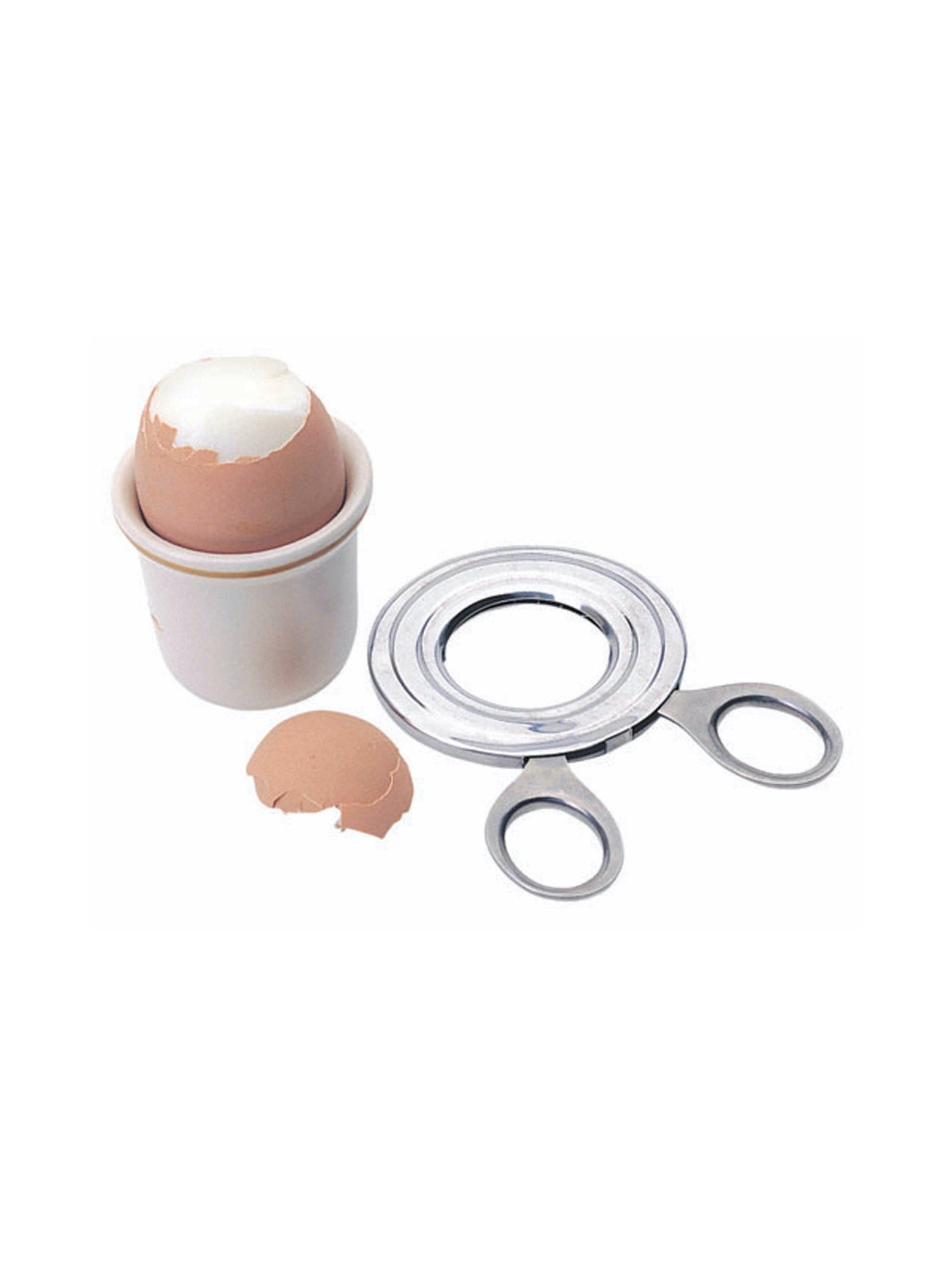 Here is the stainless steel Egg Topper from Kitchen Craft. Perfecting the art of topping a hard boiled egg to avoid shell remnants becomes easy with this simple scissor action egg topper.