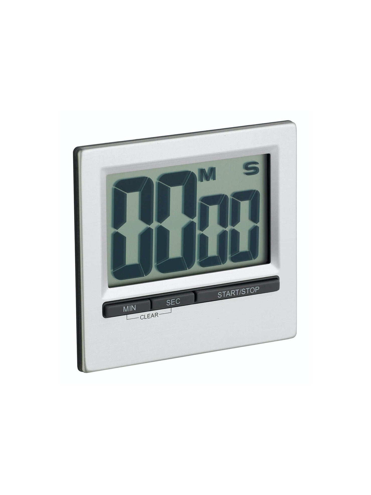 Here we have the Large Display CountdownTimer from Kitchen Craft. With a stylish silver finish, the timer not only looks great but is extremely easy to operate. The one hundred minute count up and count down timer features a large easy to read LCD display and an extra loud beep for the hard of hearing! It also includes a fold out stand, clip, and magnetic fixing for easy display and storage.