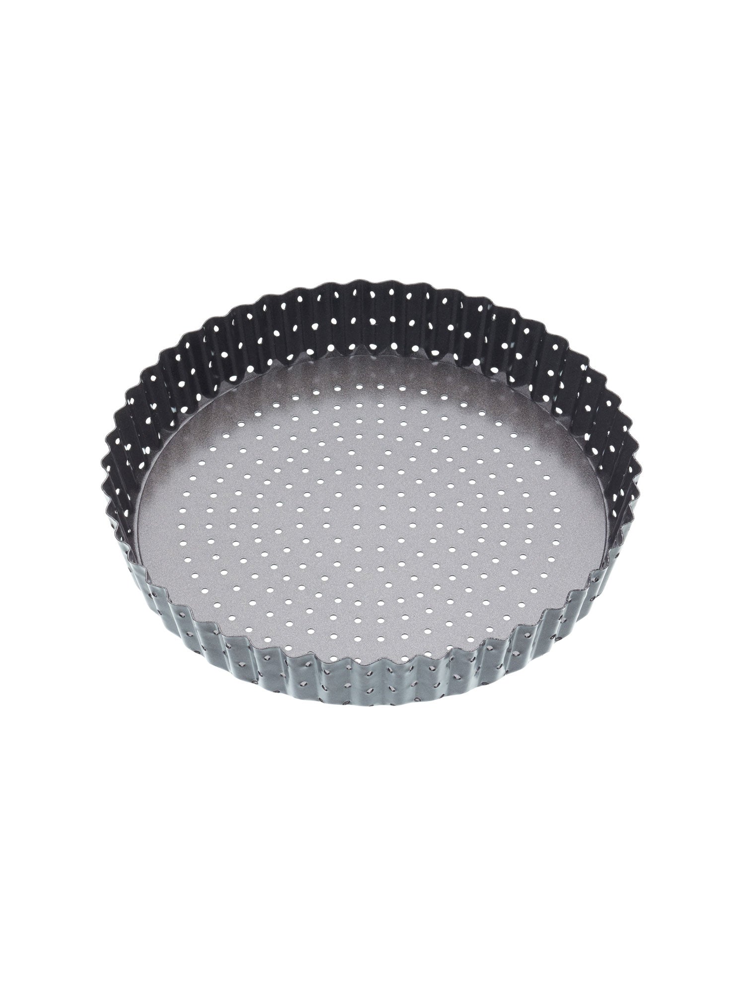 You’re looking here at the MasterClass Crusty Bake Non-stick Fluted Round 20cm Quiche Tin from Kitchen Craft, perfect for making delicious quiches, flans and tarts. The perforated holes along the base and sides ensure the air circulates freely during the cooking process and you can create fruit flans and savoury quiches with the perfect golden-brown, crisp crust. A revolutionary new take on the award winning MasterClass bakeware that creates the perfect crispy crust. Carefully selected, the Crusty Bake range in MasterClass includes key items for baking and cooking anything dough and pastry related. A true MasterClass.