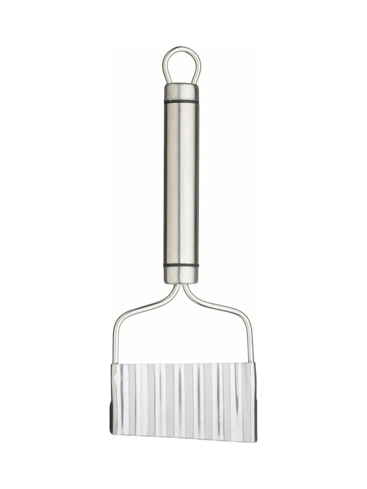 This is the Oval Handled Professional Stainless Steel Crinkle Chip Cutter from Kitchen Craft. A high quality stainless steel crinkle chip cutter, with a comfortable oval shaped handle and integral hanging storage loop.