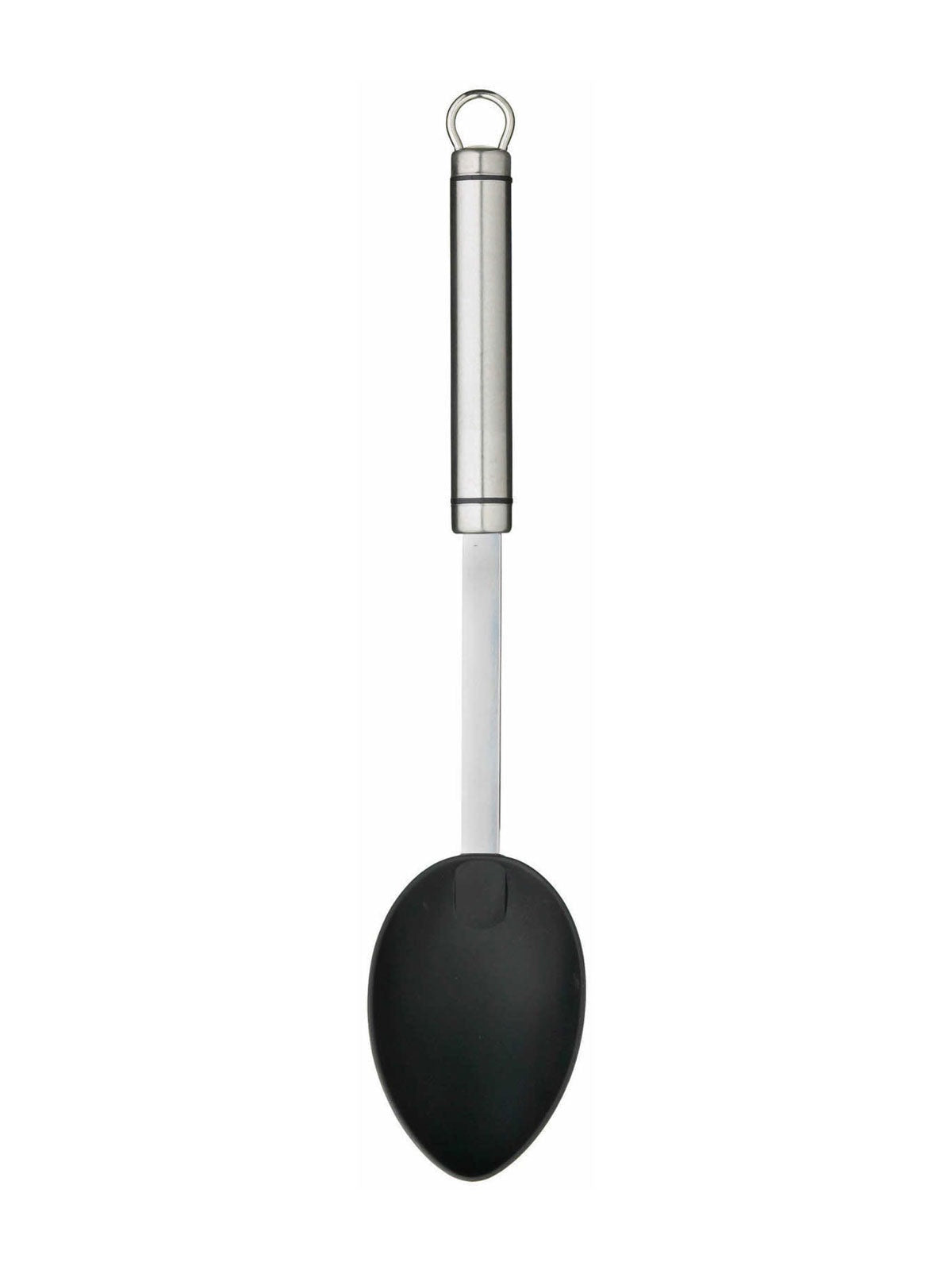 Here is the Oval Handled Stainless Steel Non-Stick Cooking Spoon from Kitchen Craft. A high quality stainless steel cooking spoon with a nylon head, ideal for use on non-stick surfaces. Features a comfortable oval shaped handle and integral hanging storage loop.