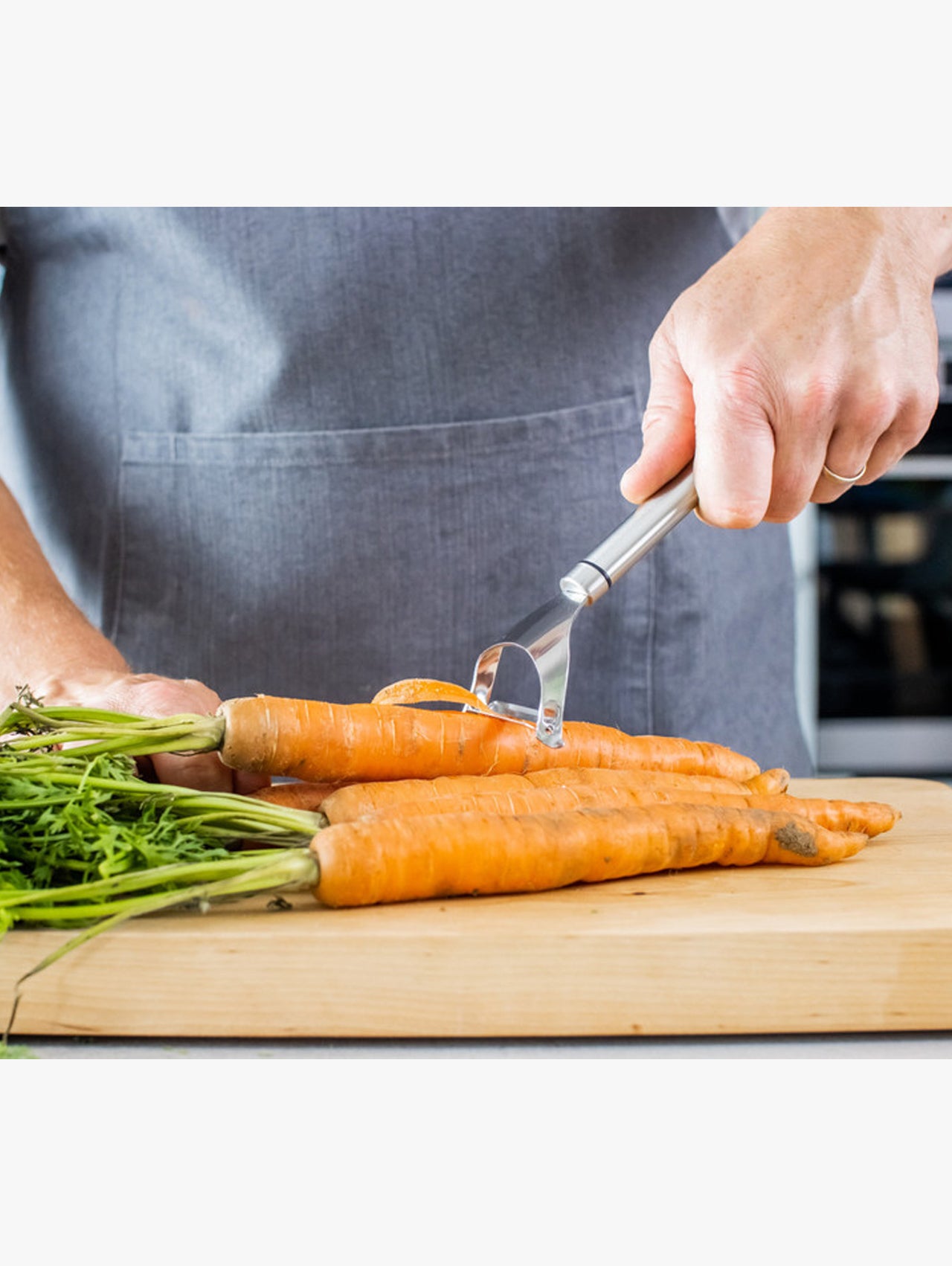 This is the Professional Stainless Y Peeler from Kitchen Craft. Peel like a pro! KitchenCraft Professional’s ‘Y’-shaped peeler speeds up time-consuming fruit and veg prep. Its swivelling blade moves with the contours of whatever you’re peeling, so the process is smoother and there are fewer snags to slow you down! This fruit and vegetable peeler has a razor sharp edge, which makes light work of removing the most stubborn of skins. It’s ideal for peeling the potatoes for Sunday lunch, apples for a pie filling or butternut squash for a stew. You can even remove blemishes with its built-in potato eye remover. With the kind of quality build KitchenCraft Professional is renowned for, this sturdy stainless steel y shaped peeler is sure to become a firm favourite in your kitchen.