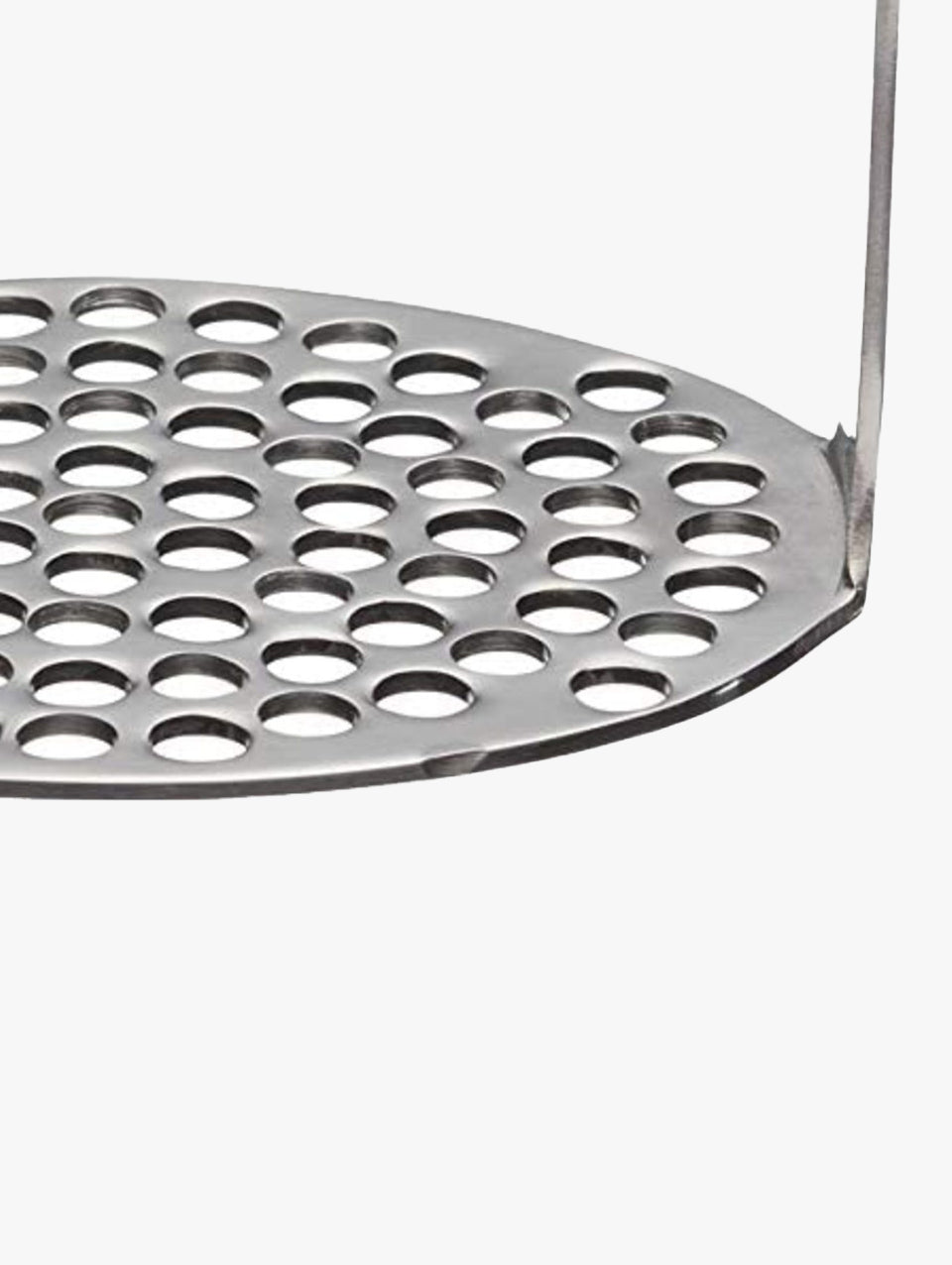 This is the Stainless Steel Masher from Kitchen Craft. Your hands can take quite a battering when you’re mashing food. That’s why KitchenCraft has created this special short-handled potato masher. Here’s how it works: the masher is fitted with an ergonomic handle, which absorbs pressure from your hands and distributes it across the mashing plate. This clever design maximises mashing pressure to reduce the strain on your hands and leave you with lovely lump-free mash. As well as potatoes, it’s ideal for other root veg like carrots and swedes, as well as garlic, fruit and more!