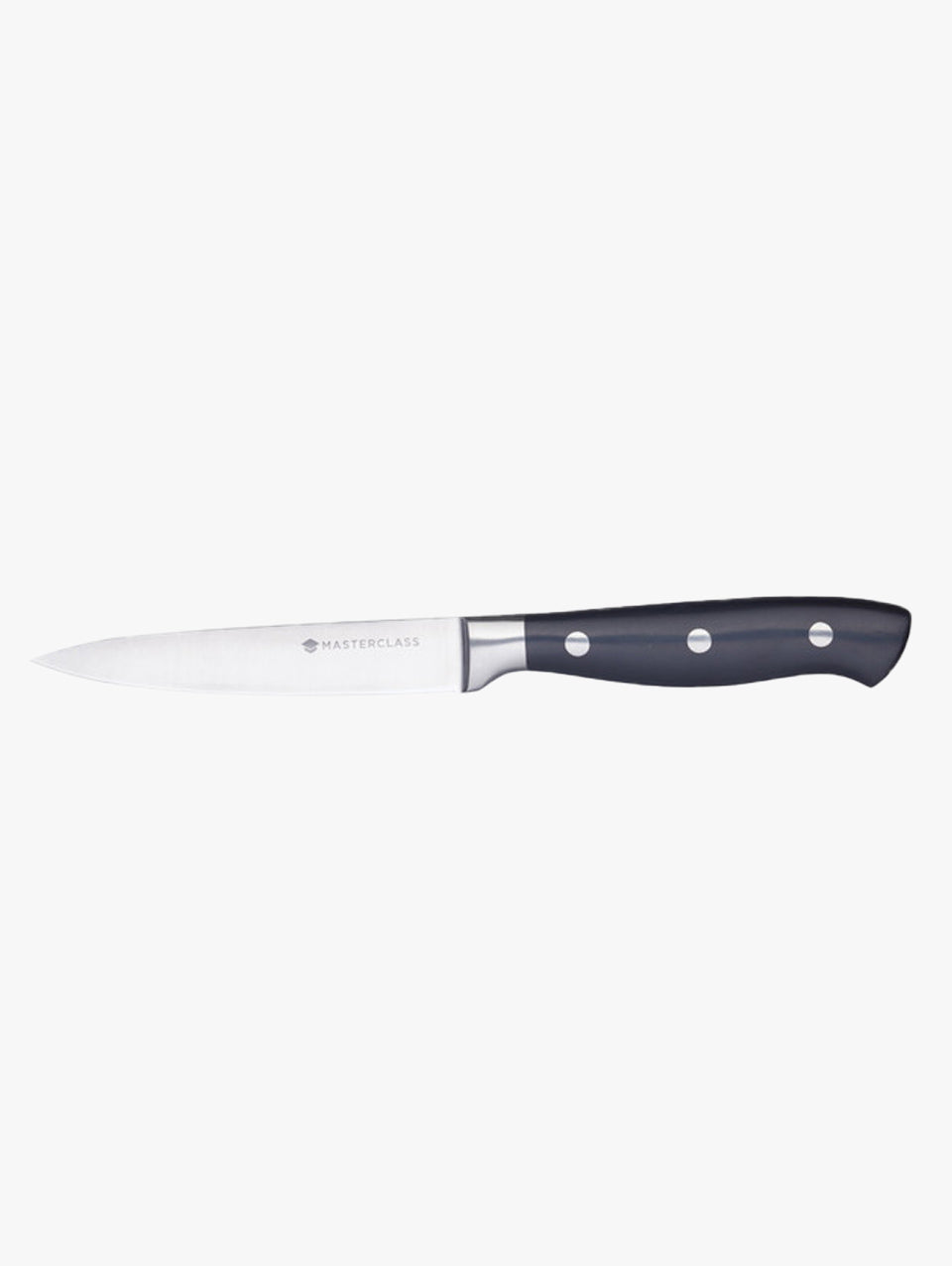 This is the Utility Knife 11.5cm Steel from Masterclass. What if you could enjoy razor-sharp cutting performance, but without actually having to sharpen your knives? MasterClass's EdgeKeeper knives maintain themselves, so you don’t have to. Their innovative self-sharpening technology means your knives always cut with fresh-from-the-factory sharpness. And because they’re made of high-carbon stainless steel, they’ll retain their precision edge and are built to last for years. In fact, they’ll only get sharper the more you use them. Built to last, this knife is covered by MasterClass' 25-year guarantee.