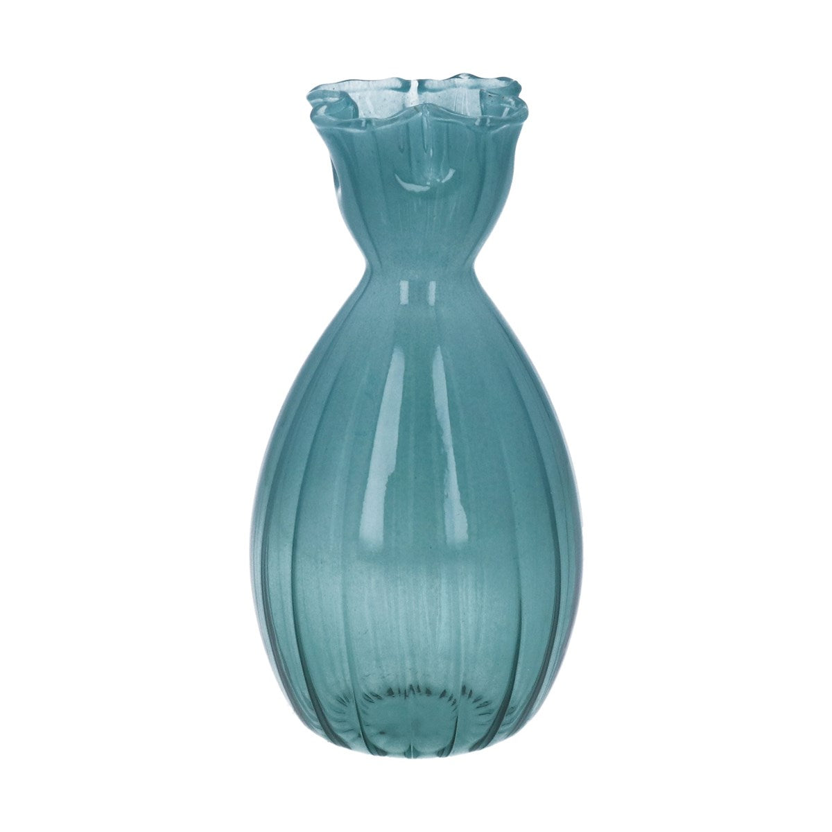 - Petrol Blue Glass Frill Top Tall Bud Vase